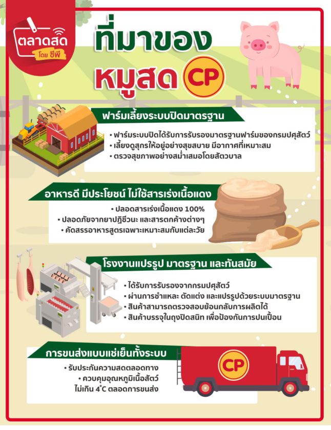 ที่มาของหมูสด CP 20 มกราคม 2565SystemNews, ข่าวธุรกิจ, ข่าวล่าสุด, แนะนำผลิตภัณฑ์ในเครือ ทำไม? หมูสด CP ถึงขายดี อยู่คู่ตลาดสดคนไทย ฟาร์มเลี้ยงระบบปิดมาตรฐาน อาหารดี มีประโยชน์ ไม่ใช้สารเร่งเนื้อแดง ปลอดฮอร์โมน ปลอดภัยจากยาปฏิชีวนะ และสารตกค้างต่างๆ โรงงานแปรรูป มาตรฐาน และทันสมัย การขนส่งแบบแช่เย็นทั้งระบบตลอดเวลา จนสินค้าถึงมือคุณ พ่อค้าแม่ค้ามั่นใจ ลูกค้าปลอดภัย % Cr.PR CPF Post Views: 1,751
