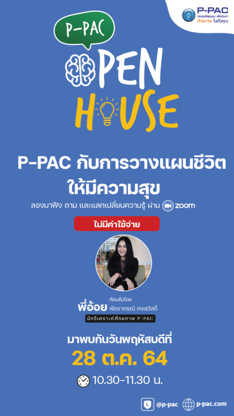 #openhouse หัวข้อ “ P-PAC กับการวางแผนชีวิตให้มีความสุข” 26 ตุลาคม 2564SystemNews, กิจกรรมเพื่อสังคม, แนะนำผลิตภัณฑ์ในเครือ ”เป้าหมายในชีวิต” หรือ “วิธีการดำเนินชีวิตที่ถูกต้อง” คุณเลือกได้หรือถูกกำหนดจากใคร? แน่นอนว่ามนุษย์แต่ละคนมีความพึงพอใจและมีเป้าหมายไม่เหมือนกัน การให้คำนิยามความสุขของแต่ละคนแตกต่างกันและก็มีการวางแผนชีวิตที่แตกต่างกันด้วยหากคุณกำลังสงสัยว่าเราสามารถออกแบบหรือวางแผนชีวิตของตัวเราเอง ให้มีความสุขได้จริงหรือ? ลองเข้ามาค้นหาเครื่องมือที่จะช่วยคุณได้ ใน Open House *“ P-PAC กับการวางแผนชีวิตให้มีความสุข”* กันนะคะ หากเราทราบว่าเราถนัดอะไร เราชอบการมีชีวิตแบบไหน และเราสามารถออกแบบชีวิตของเราเองได้ จะดีกว่ารึไม่ ที่มีคำถามอยู่ตลอดเวลาว่าเราควรทำอะไร ? เราจะตั้งเป้าหมายในชีวิตได้อย่างไร? เหมาะสำหรับ ท่านที่ต้องการเครื่องมือช่วยบอกความเป็นตัวตน และค้นหาความถนัด ในการวางแผนการใช้ชีวิตให้มีความสุข #ฟรีไม่มีค่าใช้จ่าย คลิกที่นี่เพื่อลงทะเบียน https://forms.gle/2kSQWz5vCMoQkwvq7 #สาระความรู้เพื่อวันนี้ #สแกนลายนิ้วมือ #CPALL Post Views: 1,374