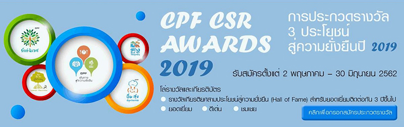 หน่วยงานที่สนใจสามารถกรอกรายละเอียดข้อมูลโครงการเพื่อพิจารณารางวัล 3 ประโยชน์สู่ความยั่งยืน ปี 2562 ได้ตั้งแต่ 2 พฤษภาคม 2562 ถึง 30 มิถุนายน 2562ที่เว็บไซต์ http://cpfcsr.cpf.co.th (ไปที่หน้าหลัก CSR KPI ONLINE) หรือ http://cpfcsr.cpf.co.th/Login/tabid/65/Default.aspx?returnurl=%2fdefault.aspx