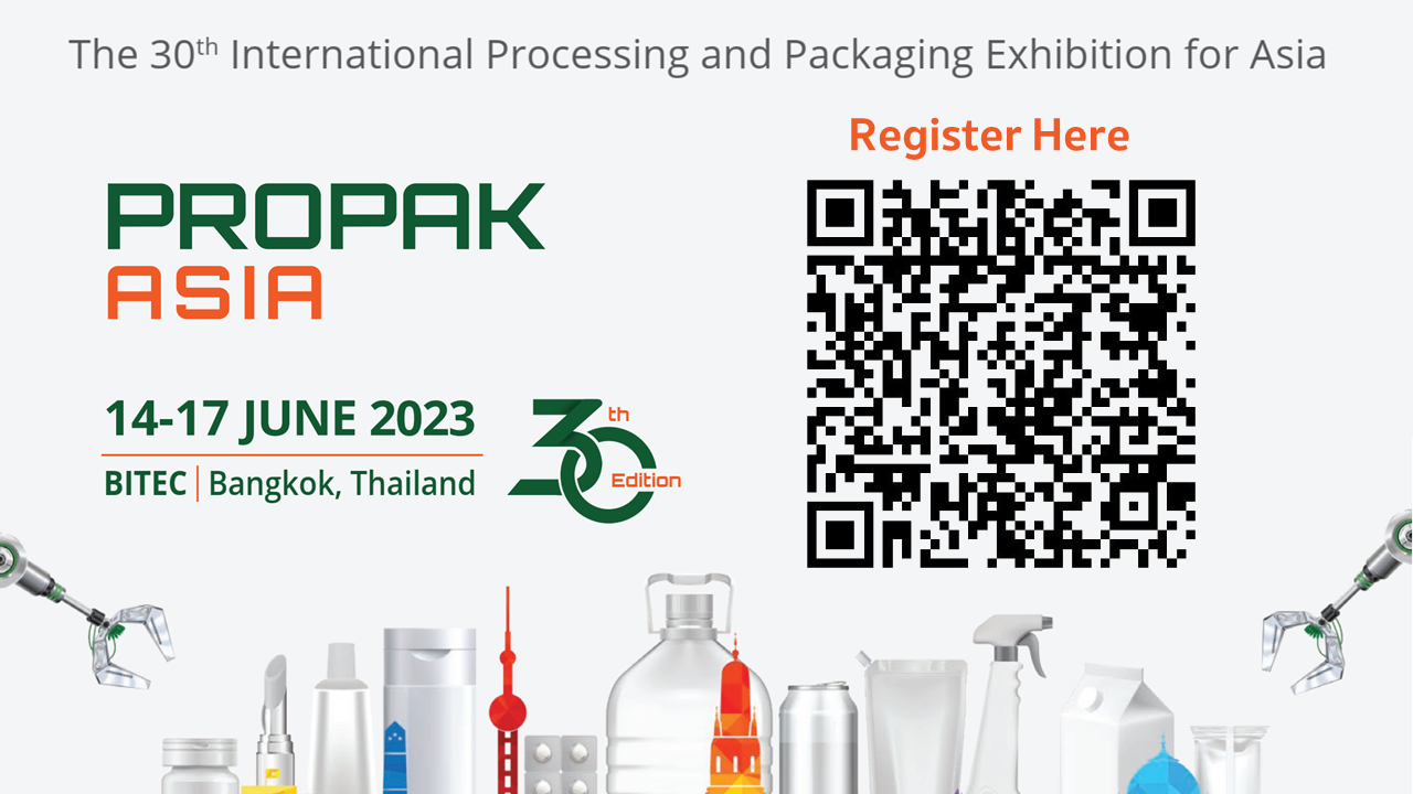 อย่าลืมมาพบกันที่งาน PROPAK Asia 2023 งานแสดงสินค้าและเทคโนโลยีด้านการผลิต แปรรูปและบรรจุภัณฑ์ แห่งภูมิภาคเอเชีย
