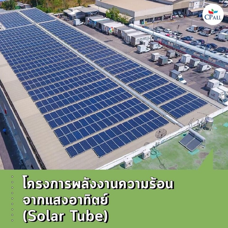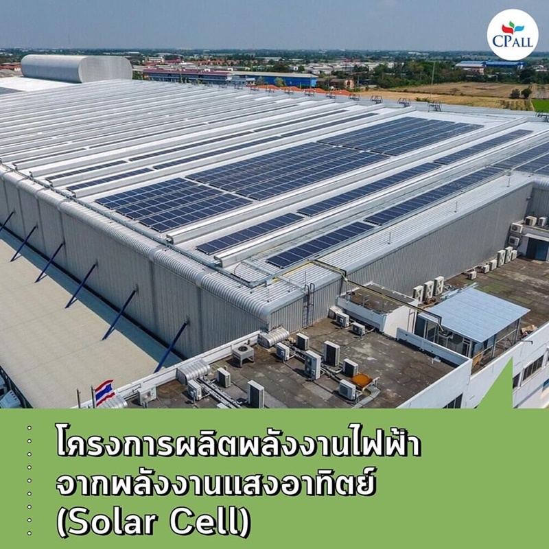 1.โครงการพลังงานแสงอาทิตย์ หรือ solar cell คือ สิ่งประดิษฐ์ที่สร้างขึ้นมาเพื่อเปลี่ยนพลังงานแสงอาทิตย์ให้กลายเป็นพลังงานไฟฟ้า ซีพี ออลล์ได้เล็งเห็นถึงประโยชน์ของแผง solar cell ในการผลิตไฟฟ้าทดแทนโดยไม่ต้องอาศัยแหล่งจ่ายไฟภายนอก จึงได้ติดตั้งแผง solar cell และผลิตไฟฟ้าใช้เอง ภายศูนย์ในศูนย์การกระจายสินค้า