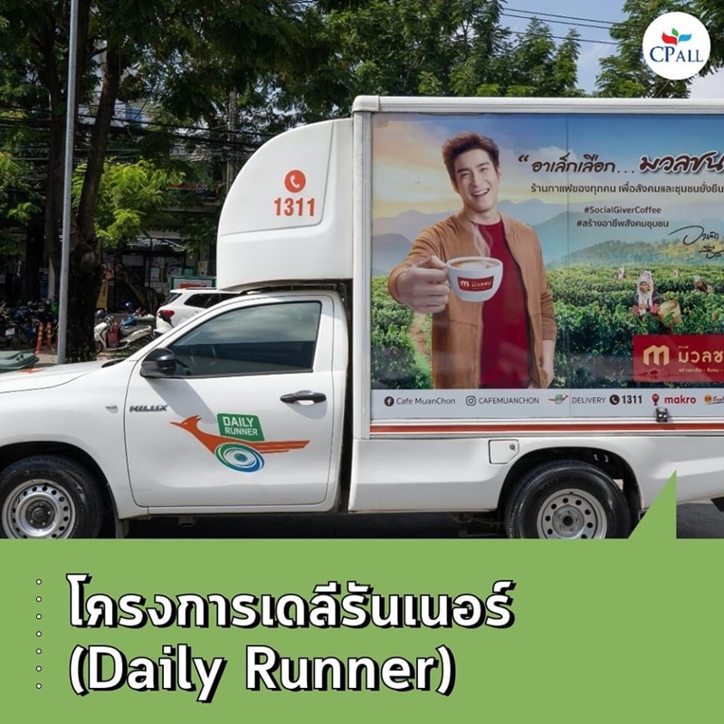 บริษัท ซีพี รีเทลลิงค์ จำกัด ทดลองติดตั้งแผง Solar Cell ไว้บนหลังคารถ ภายใต้ชื่อ เดลี รันเนอร์ (Daily Runner) เพื่อเป็นพลังงานไฟฟ้าสำาหรับอุปกรณ์ทำความเย็นภายในรถที่พร้อมบริการจัดส่งสินค้าตลอด 24 ชั่วโมง ปัจจุบันมีรถขนส่งที่ติดตั้งแล้ว รวมทั้งสิ้น 28 คัน ประกอบไปด้วย รถขนส่ง 15 คัน รถขายกาแฟ 3 คัน รถช่างซ่อม 10 คัน