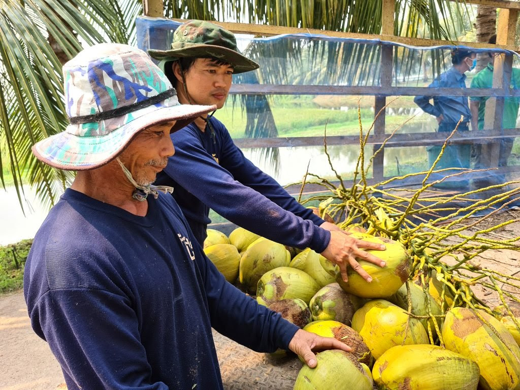 คุณวุฒิชัย โวหารคล่อง ผู้จัดการทั่วไปของศูนย์เรียนรู้ เล่าให้เราฟังว่า ที่ศูนย์ฯ แห่งนี้ส่งเสริมให้เกษตรกรปลูกมะพร้าวรอบคันนา สร้างรายได้เสริมจากการทำนาข้าว โดยมีการจัดการกับมะพร้าวที่ค่อนข้างเป็นระบบ มี tag ติดที่มะพร้าวทุกต้น มีการเช็ควันออกดอกของมะพร้าว ซึ่งเกษตรกรสามารถเรียนรู้และนำไปปฏิบัติตาม
