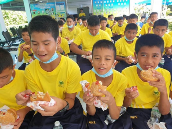นอกจากได้รับข้อคิดที่ดีเพื่อเป็นหลักในการดำเนินชีวิตแล้ว น้องๆยังได้อิ่มท้องกับขนม ผลไม้ และน้ำแร่ เป็นอาหารว่างด้วย
