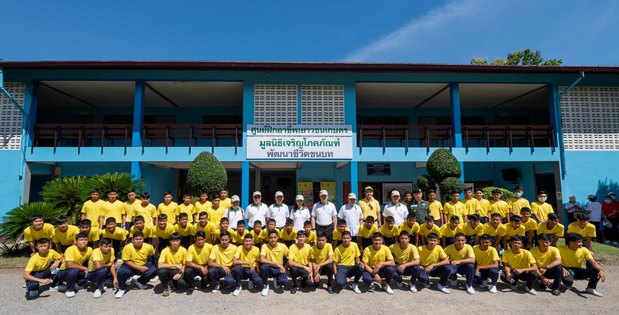 โอกาสนี้ คุณสุภกิต เจียรวนนท์ ได้พบกับน้องๆนักเรียนทุนในพระราชานุเคราะห์ รุ่นปัจจุบันทั้ง 60 คน และน้องศิษย์เก่าโรงเรียนตำรวจตระเวนชายแดน ซึ่งท่านได้ให้โอวาทแก่เยาวชนในโครงการ ว่า “ตลอดระยะเวลาเกือบ 100 ปี ที่เครือได้ดำเนินกิจการในประเทศไทย เราเจริญเติบโตภายใต้สถาบันพระมหากษัตริย์ เราพร้อมที่จะสนองงาน การดำเนินการตามแนวพระราชดำริ ในทุกๆ ด้าน อนึ่ง ศูนย์ฝึกอาชีพเยาวชนเกษตร มูลนิธิเจริญโภคภัณฑ์พัฒนาชีวิตชนบทแห่งนี้ นับเป็นอีกหนึ่งแผนงาน ในความมุ่งมั่นถึงเจตนารมณ์ของบริษัทฯ ที่มีส่วนร่วมในการพัฒนาคุณภาพชีวิตเยาวชนที่ขาดแคลน ให้ได้รับโอกาสทางการศึกษา ให้เติบโตเป็นพลเมืองที่ดี มีอาชีพที่ยั่งยืน และยังขยายผลไปยังเกษตรกรในชุมชนโดยรอบ” โดยคุณสุภกิต ได้มอบคติประจำใจแก่น้องๆ เยาวชนในโครงการ ว่า “การจะทำอะไรนั้น ต้องเริ่มจากความภาคภูมิใจและตั้งใจ” พร้อมให้แนวทางการดำเนินชีวิตด้วยหลัก 5-ดี คือ “คิดดี – พูดดี – ทำดี – คบคนดีๆ และ อยู่ในที่ดี”
