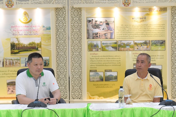 พร้อมนี้ คุณสุภกิต และคุณมาริษา พร้อมคณะ ยังได้เข้าเยี่ยมชมศูนย์ศึกษาการพัฒนาห้วยทรายอันเนื่องมาจากพระราชดำริ ซึ่งมูลนิธิเจริญโภคภัณฑ์พัฒนาชีวิตชนบท อนุญาตให้ได้ใช้พื้นที่ 52 ไร่ ภายในศูนย์ศึกษาการพัฒนาห้วยทรายฯ เป็นที่ตั้งศูนย์ฝึกอาชีพเยาวชนเกษตร เพื่อดำเนินการใน 3 ภารกิจ คือ การฝึกอบรม สาธิตการทำเกษตรเชิงธุรกิจ และการขยายผลการพัฒนาสู่ชุมชนรอบศูนย์ฯ โดยมูลนิธิฯ เป็นหนึ่งใน 25 หน่วยงานขยายผลของศูนย์ศึกษาการพัฒนาห้วยทรายฯ ร่วมขับเคลื่อนให้เกิด ศูนย์เรียนรู้ชุมชน กลุ่มออมทรัพย์ และกลุ่มวิสาหกิจชุมชน รวม 8 กลุ่ม และมูลนิธิฯ ร่วมสนับสนุนและติดตามต่อเนื่อง โดยมี พันตำรวจเอก พันธ์ศักดิ์ สมันตรัฐ ผู้อำนวยการศูนย์ศึกษาการพัฒนาห้วยทรายอันเนื่องมาจากพระราชดำริ ให้การต้อนรับและบรรยายสรุป
