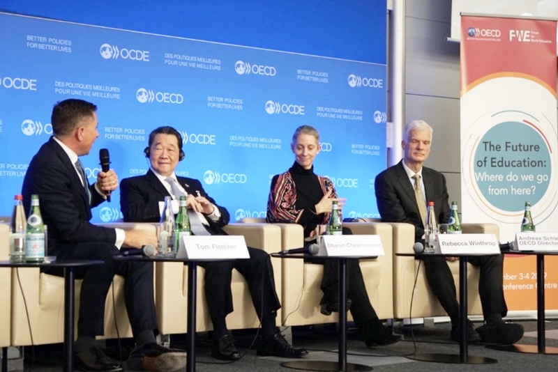 วันที่ 3-4 ธันวาคม 2562 องค์การเพื่อความร่วมมือและการพัฒนาทางเศรษฐกิจ (OECD) จัดการประชุมเพื่อการศึกษาโลก 2019 หรือ “2019 Forum for World Education” ขึ้นเป็นครั้งแรกที่กรุงปารีส สาธารณรัฐฝรั่งเศส โดยเวทีนี้ได้เชิญบรรดาผู้นำด้านธุรกิจระดับโลกที่ให้ความสำคัญด้านการพัฒนาคนและการศึกษาเข้าร่วมประชุมเพื่อระดมความเห็นในการออกแบบ “รูปแบบการศึกษาแห่งอนาคตสำหรับทศวรรษหน้า” โดยตั้งเป้าหมายที่จะใช้นวัตกรรมทางการศึกษาเป็นพลังเสริมสร้างอนาคตเศรษฐกิจโลกให้แข็งแกร่ง