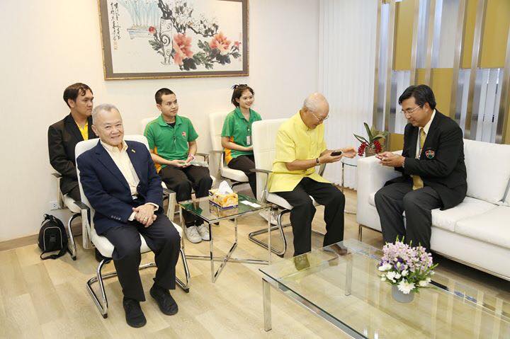 ในโอกาสนี้ คุณวิเชียร เนียมน้อม ผู้อำนวยการวิทยาลัยเทคโนโลยีปัญญาภิวัฒน์ และ คุณวัชระ เกษสำลี ผู้อำนวยการสำนักสื่อสารองค์กร ได้นำตัวแทนนักเรียนวิทยาลัยเทคโนโลยีปัญญาภิวัฒน์ เข้าพบเพื่อแสดงความขอบคุณผู้ร่วมบริจาค
