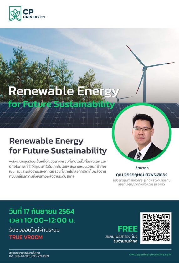 CP University ขอเชิญเข้าร่วมสัมมนาออนไลน์ในหัวข้อ “Renewable Energy for Future Sustainability”