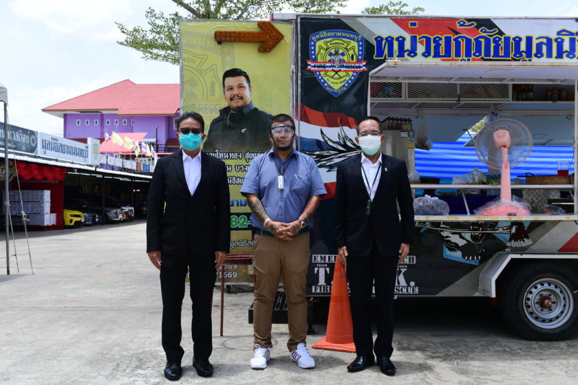 ประธานกลุ่มอาสาดุสิต (กลุ่มประเทศไทยกลับมาสดใสดีกว่าเดิม) ร่วมรับมอบ ณ สำนักงานมูลนิธิสยามนนทบุรี วัดราษฎร์ประคองธรรม จังหวัดนนทบุรี