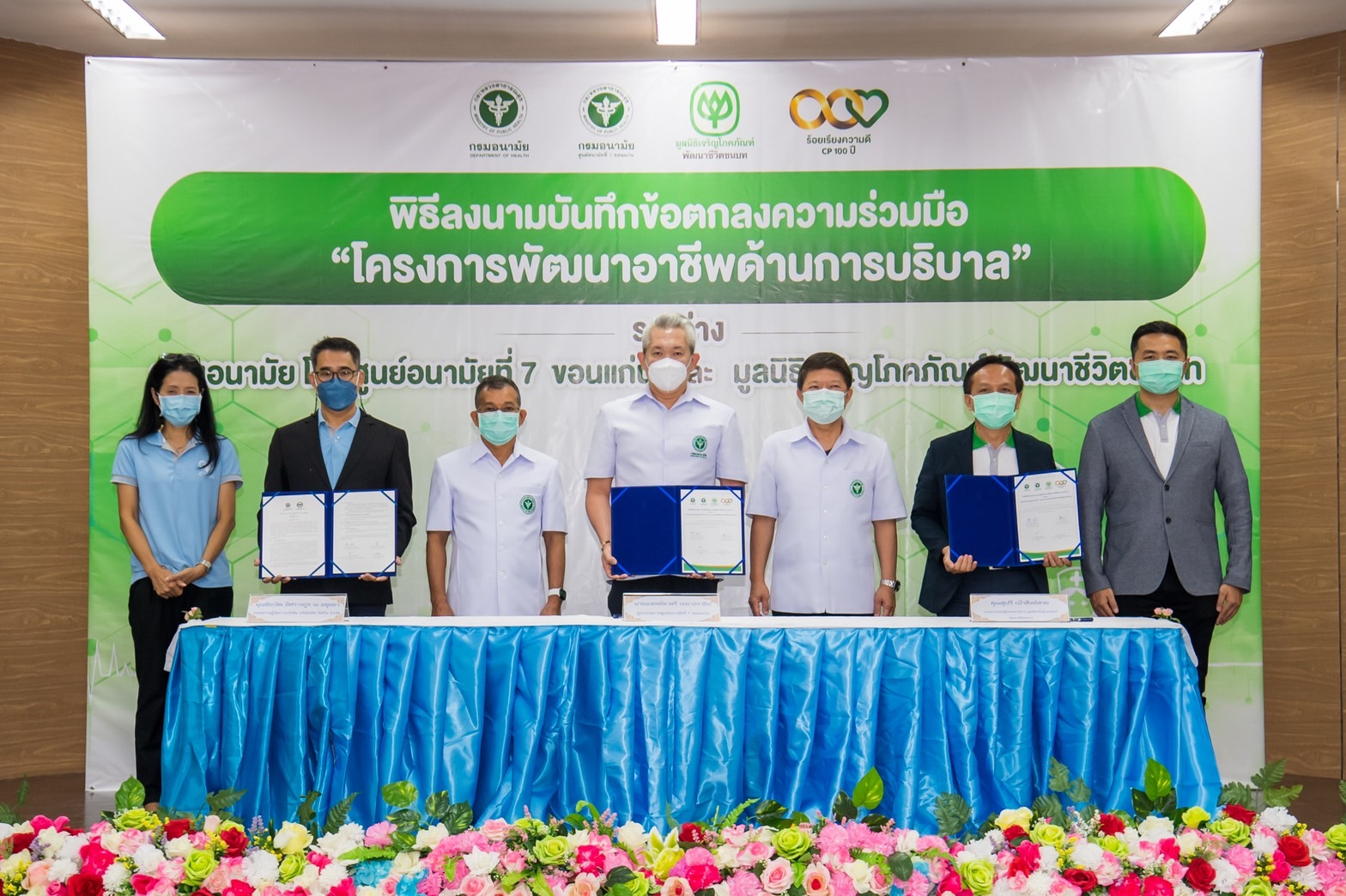 วันนี้ (20 มิถุนายน 2565) นายสุปรี เบ้าสิงห์สวย กรรมการและผู้ช่วยเลขาธิการ มูลนิธิเจริญโภคภัณฑ์พัฒนาชีวิตชนบท พร้อมด้วย นายแพทย์ชาตรี เมธาธราธิป ผู้อำนวยการศูนย์อนามัยที่ 7 ขอนแก่น กรมอนามัย กระทรวงสาธารณสุข ร่วมลงนามบันทึกข้อตกลงความร่วมมือ (MOU) โครงการพัฒนาอาชีพด้านการบริบาล โดยมี นายแพทย์สุวรรณชัย วัฒนายิ่งเจริญชัย อธิบดีกรมอนามัย และนายจอมกิตติ ศิริกุล กรรมการ มูลนิธิเจริญโภคภัณฑ์พัฒนาชีวิตชนบท ร่วมเป็นสักขีพยาน เพื่อสร้างโอกาสทางการศึกษาแก่ผู้ด้อยโอกาส ให้มีอาชีพที่มั่นคง ช่วยเหลือครอบครัว สังคม และประเทศชาติ ตลอดจนเตรียมพร้อมบุคลากรดูแลผู้สูงวัย รองรับสังคมผู้สูงอายุ