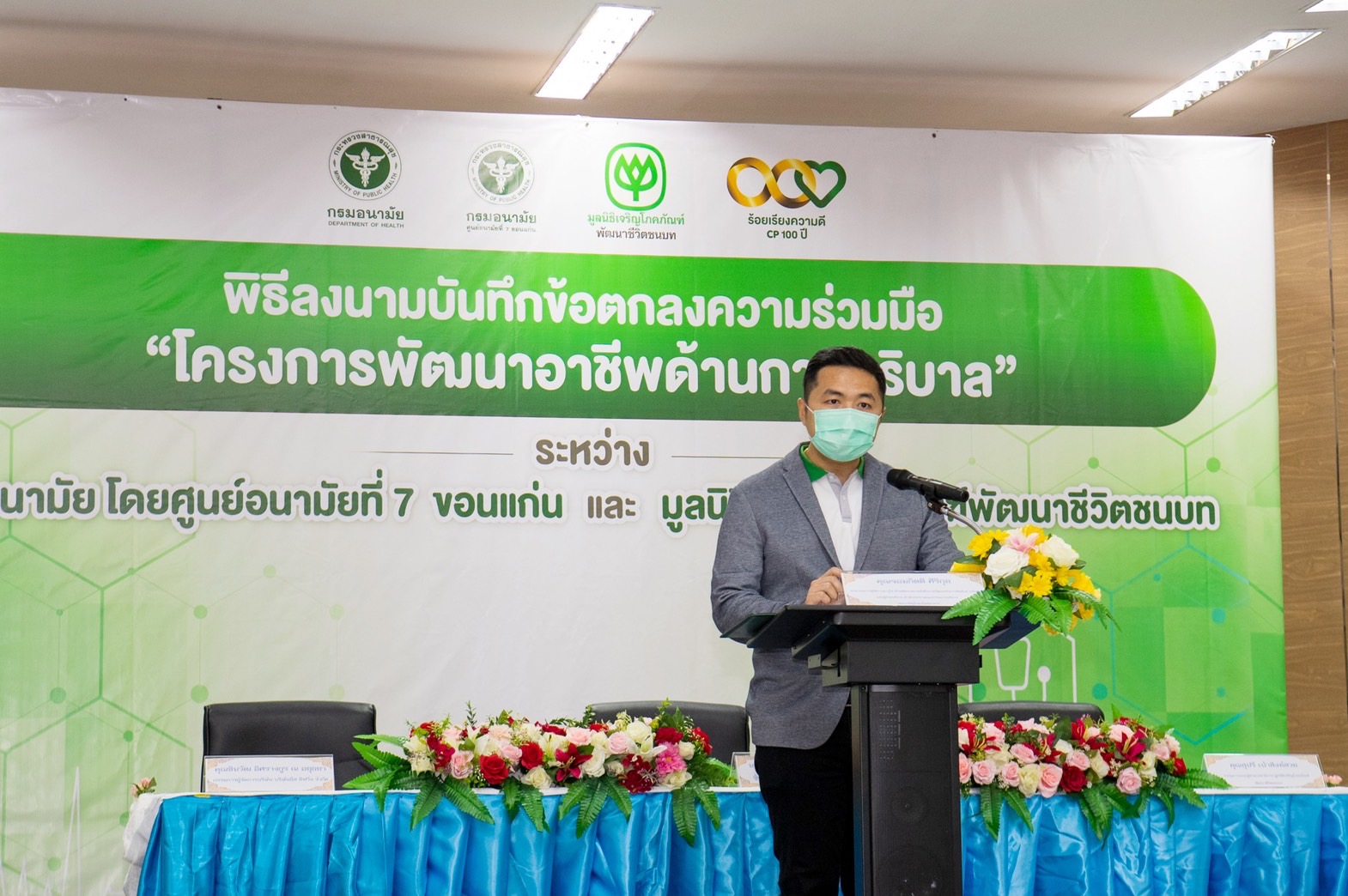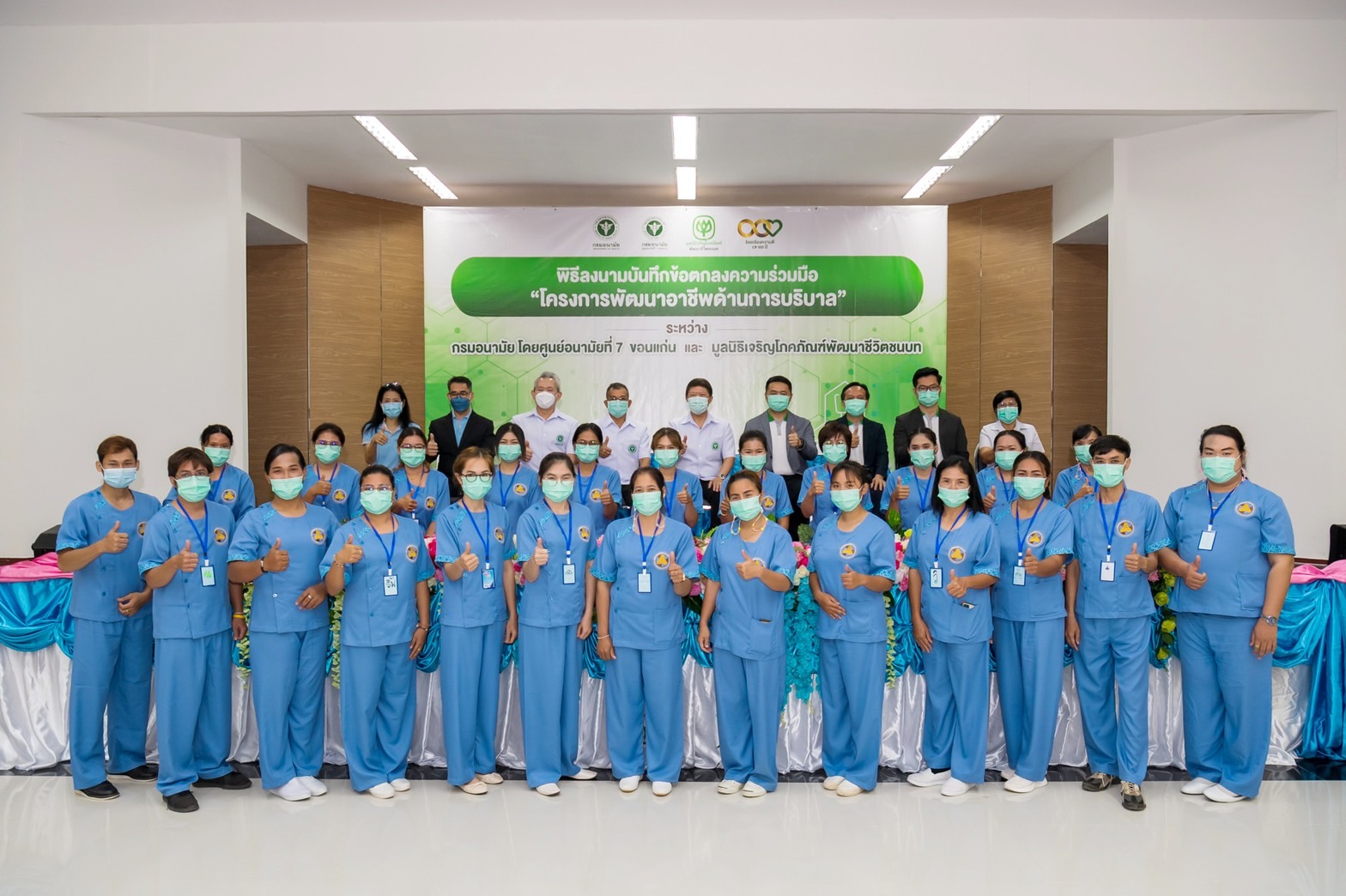 คุณจอมกิตติ ศิริกุล กรรมการ มูลนิธิเจริญโภคภัณฑ์พัฒนาชีวิตชนบท กล่าวว่า สำหรับการลงนามบันทึกข้อตกลงความร่วมมือ (MOU) ในโครงการพัฒนาอาชีพด้านการบริบาล ของมูลนิธิฯ มีเป้าหมายที่สอดคล้องกับการดำเนินงานศูนย์ฝึกอบรมหลักสูตรผู้ดูแลผู้สูงอายุ 420 ชั่วโมง ของศูนย์อนามัยที่ 7 ขอนแก่น โดยมูลนิธิฯ ร่วมสนับสนุนงบประมาณทุนการศึกษา จำนวน 20 ทุน รวมทั้งร่วมคัดเลือกและติดตามพัฒนาศักยภาพผู้เข้ารับการอบรมร่วมกัน โดยมีเป้าหมายสำคัญในการมุ่งสร้างค่านิยม “ความกตัญญู ยกย่องผู้สูงอายุ และส่งเสริมสุขภาพที่ดี” โดยประสานความร่วมมือกับหน่วยงานภาคีทั้งภาครัฐและภาคเอกชน ในการขับเคลื่อนโครงการได้อย่างมีประสิทธิภาพ