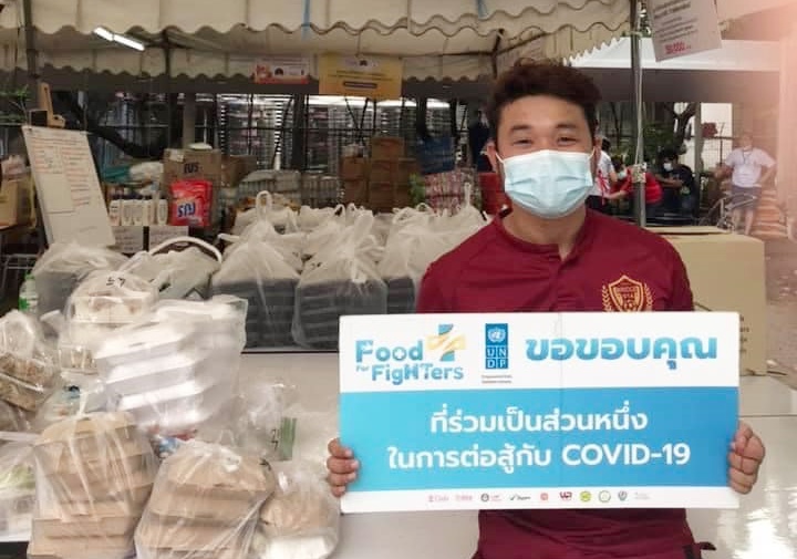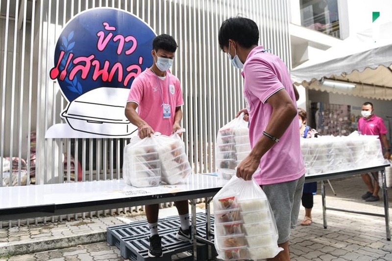 “น้องตะวัน” ศิษย์เก่าโครงการนักเรียนทุนฯ มูลนิธิเจริญโภคภัณฑ์พัฒนาชีวิตชนบท ร่วมกับเพื่อนนักกีฬาสโมสรฯ มาทำจิตอาสาทุกวัน ในโครงการ Food for figrters (ศูนย์ข้าวเพื่อหมอ)