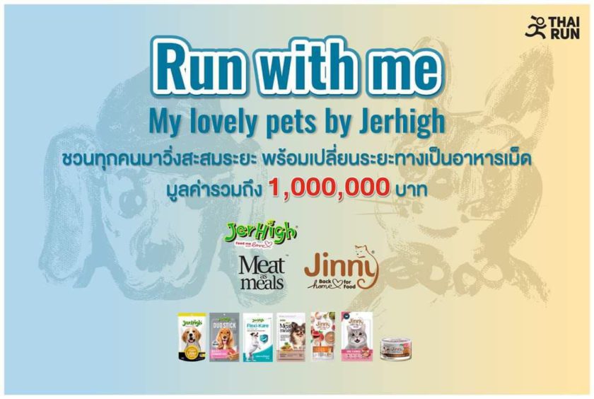 งานนี้เราไม่ได้วิ่งคนเดียว แต่เรามารวมพลังกันวิ่งกับผลิตภัณฑ์อาหารสัตว์เลี้ยง #Jerhigh และ #Jinny ผู้ร่วมสนับสนุนใจดีที่พร้อมมอบความรักในครั้งนี้ เป็นผลิตภัณฑ์อาหารและขนมแสนอร่อยมูลค่าถึง 1,000,000 บาท