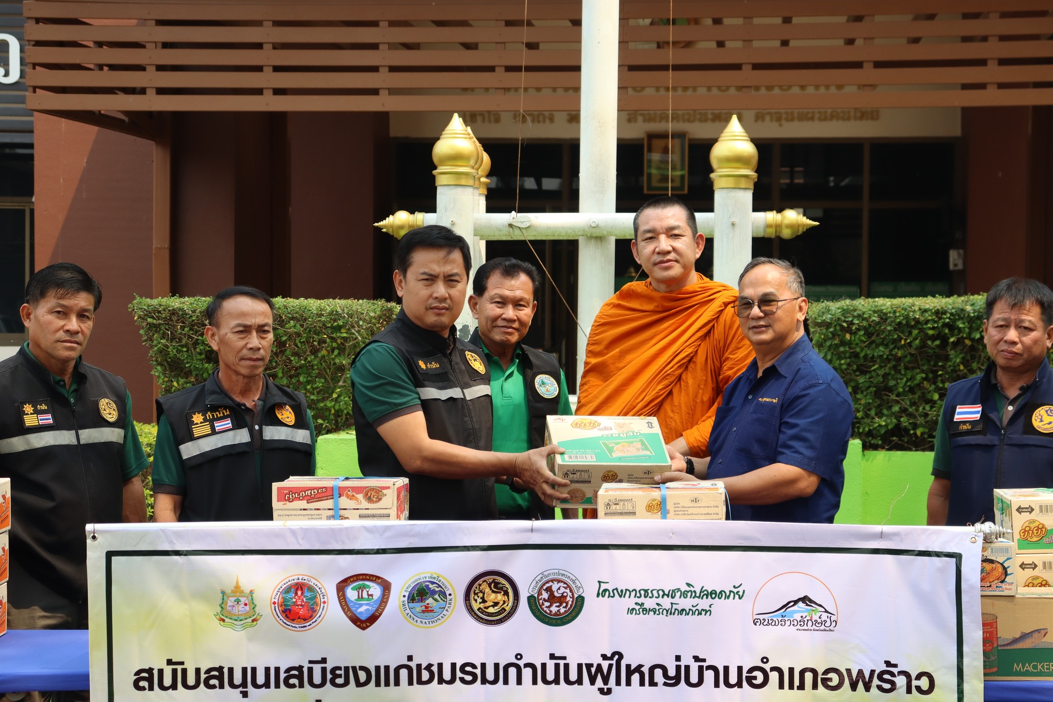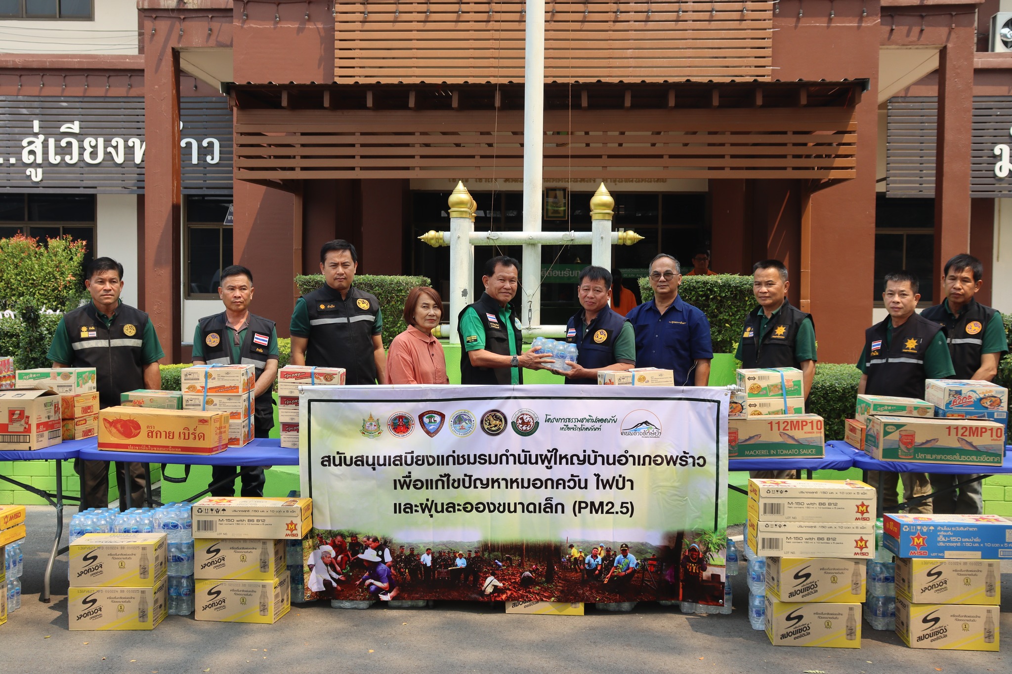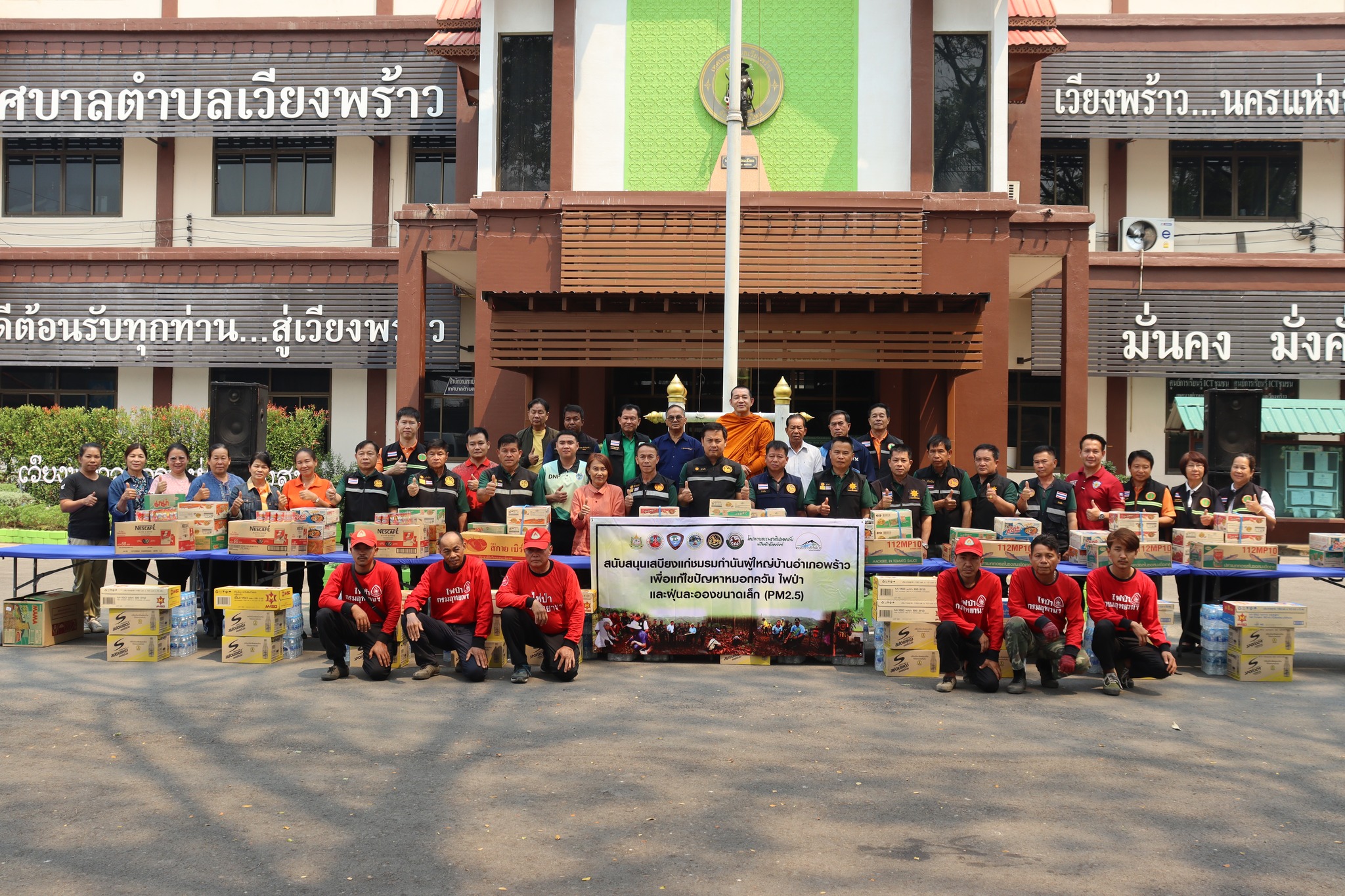 เมื่อเร็ว ๆ นี้ พระครูวรวรรณวิวัฒน์ ดร. เจ้าคณะตำบลโหล่งขอด อำเภอพร้าว จังหวัดเชียง ในฐานะประธานชมรมคนพร้าวรักษ์ป่า พร้อมด้วย ร.ต.ท.นคร ปัญญาทิพย์ นายกเทศมนตรีตำบลเวียงพร้าว อำเภอพร้าว จังหวัดเชียงใหม่ คุณอานนท์ กุลนิล หัวหน้าอุทยานแห่งชาติศรีลานนา และคุณนิพนธ์ มุ่ยเรืองศรี ผู้บริหารโครงการธรรมชาติปลอดภัย เครือเจริญโภคภัณฑ์ ร่วมมอบเสบียงอาหารและน้ำดื่มให้แก่ชมรมกำนันผู้ใหญ่บ้าน และ ผู้นำชุมชนจำนวน 11 ตำบล ในพื้นที่อำเภอพร้าว เพื่อสร้างขวัญกำลังใจ และสนับสนุนภารกิจเฝ้าระวังและแก้ไขปัญหาหมอกควันไฟป่า รวมทั้งฝุ่นละอองขนาดเล็ก (PM 2.5) ในพื้นที่อำเภอพร้าว จังหวัดเชียงใหม่