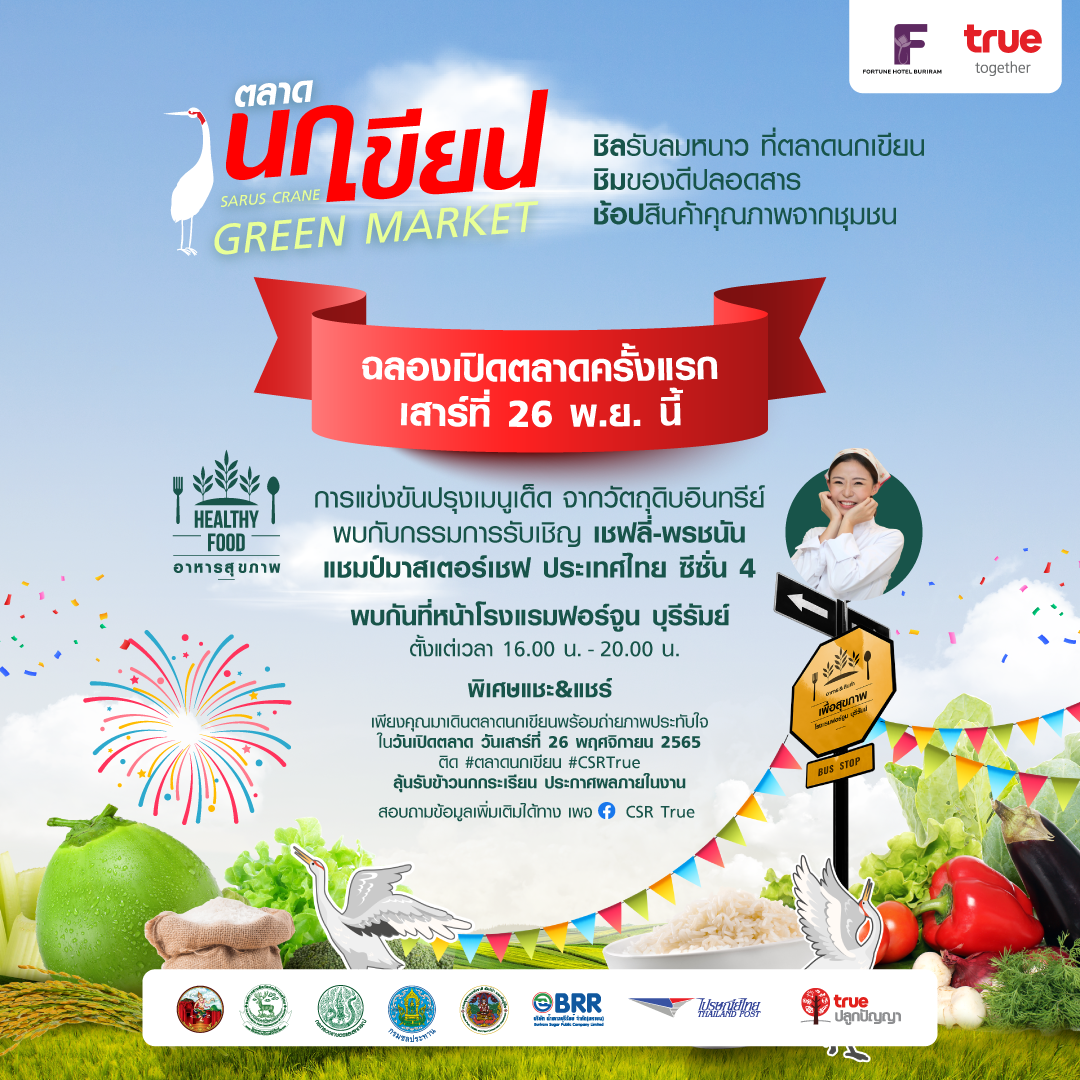 เพียงถ่ายภาพประทับใจของคุณที่ตลาดนกเขียน ในวันเสาร์ที่ 26 พ.ย. 65 แล้วแชร์พร้อมแฮชแท็ก #ตลาดนกเขียน #csrtrue ลุ้นรับฟรี !! “ข้าวนกกระเรียน” ข้าว GI ของดีบุรีรัมย์