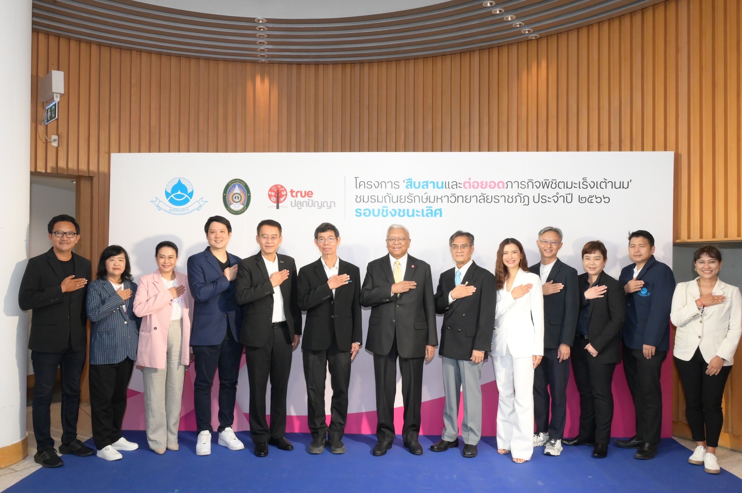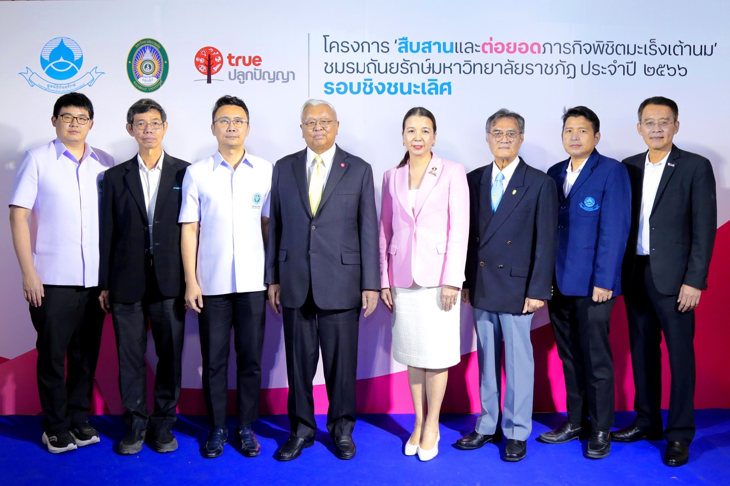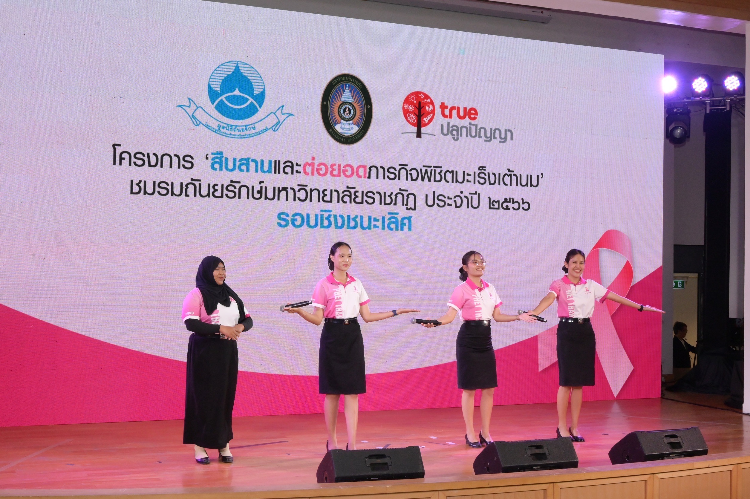 มูลนิธิถันยรักษ์ ในพระราชูปถัมภ์สมเด็จพระศรีนครินทราบรมราชชนนี โดย นายจิรายุ อิศรางกูร ณ อยุธยา รองประธานกรรมการมูลนิธิถันยรักษ์ฯ (ที่ 4 จากซ้าย) และนางบุษดี เจียรวนนท์ เลขาธิการมูลนิธิถันยรักษ์ฯ (ที่ 4 จากขวา) ร่วมกับ บมจ. ทรู คอร์ปอเรชั่น โดย นายประพาฬพงษ์ มากนวล หัวหน้าฝ่ายทรูปลูกปัญญา (ขวาสุด) และมหาวิทยาลัยราชภัฏทั่วประเทศ จัดประกวดโครงการ ‘สืบสานและต่อยอดภารกิจพิชิตมะเร็งเต้านม’ ชมรมถันยรักษ์ มหาวิทยาลัยราชภัฏ ประจําปี 2566 ภายใต้โครงการสืบสานพระราชปณิธานสมเด็จย่า ต้านภัยมะเร็งเต้านม เพื่อร่วมสร้างความตระหนักถึงภัยของมะเร็งเต้านม และรณรงค์ให้ผู้หญิงไทยรู้จักวิธีการตรวจเต้านมด้วยตนเองอย่างถูกต้อง พร้อมทั้งสังเกตการเปลี่ยนแปลงอย่างสม่ำเสมอ โดยมีความมุ่งหวังที่จะช่วยลดความเสี่ยงจากการเจ็บป่วย และลดอัตราการเสียชีวิตด้วยโรคมะเร็งเต้านม ผ่านกิจกรรมรณรงค์สื่อสารของนักศึกษาจากชมรมถันยรักษ์ ครอบคลุมการให้ความรู้สู่ชุมชนในพื้นที่บริการการศึกษาของมหาวิทยาลัยราชภัฏทั่วประเทศ ร่วมด้วย นายแพทย์เฉลิมเดช กรรณวัฒน์ แพทย์ประจำศูนย์ถันยรักษ์ และรองประธานโครงการสืบสานพระราชปณิธานสมเด็จย่า ต้านภัยมะเร็งเต้านม (ที่ 2 จากขวา) นายแพทย์เอกชัย เพียรศรีวัชรา รองอธิบดีกรมอนามัย กระทรวงสาธารณสุข (ที่ 3 จากซ้าย) นายแพทย์ชลพันธ์ ปิยถาวรอนันต์ ผู้อำนวยการกองอนามัยวัยทำงาน กรมอนามัย กระทรวงสาธารณสุข (ซ้ายสุด) นายแพทย์ชลทิศ อุไรฤกษ์กุล ที่ปรึกษาสำนักส่งเสริมสุขภาพ กรมอนามัย กระทรวงสาธารณสุข (ที่ 2 จากซ้าย) และนายบรรยงค์ สุวรรณผ่อง นักวิชาการนิเทศศาสตร์ (ที่ 3 จากขวา) ให้เกียรติร่วมงานและมอบรางวัลให้แก่ชมรมถันยรักษ์ จากมหาวิทยาลัยราชภัฏ ทั้ง 14 ชมรม เมื่อวันที่ 29 ก.พ. 2567 ที่ผ่านมา ซึ่งผลการประกวดรอบชิงชนะเลิศมีดังนี้