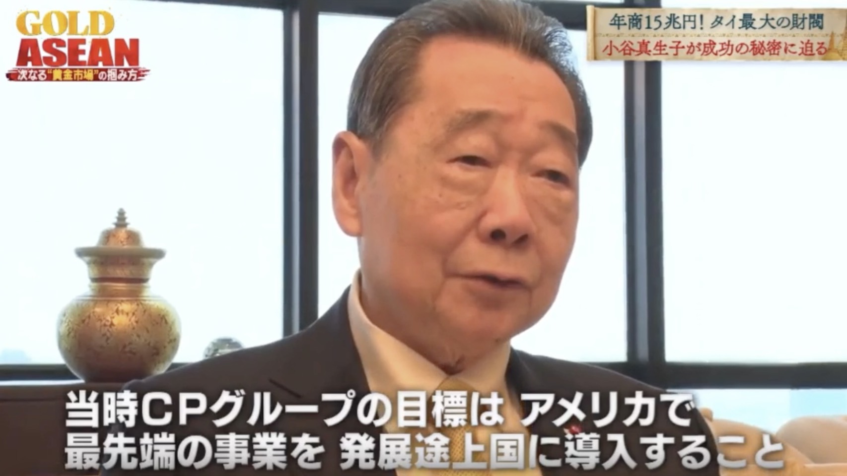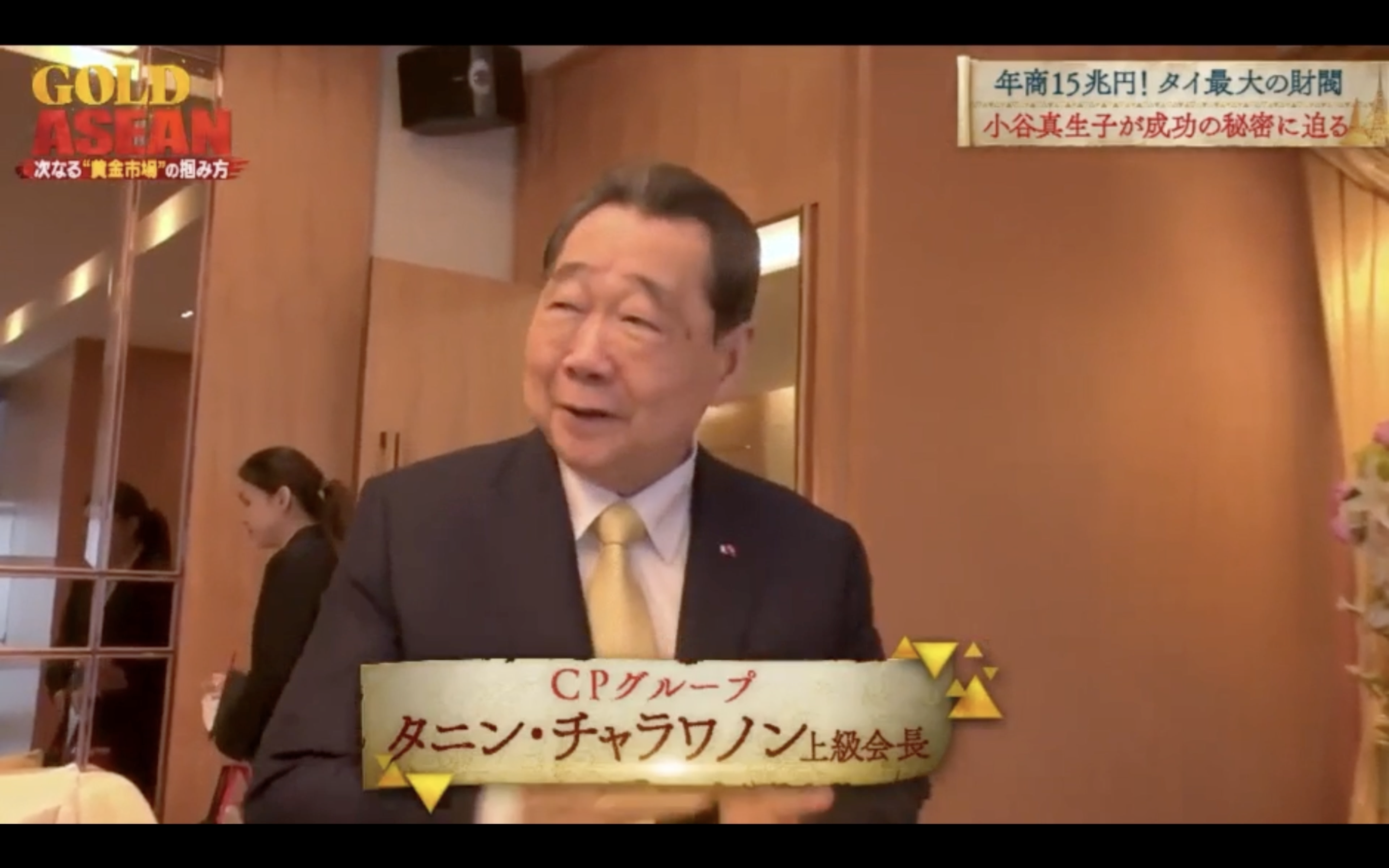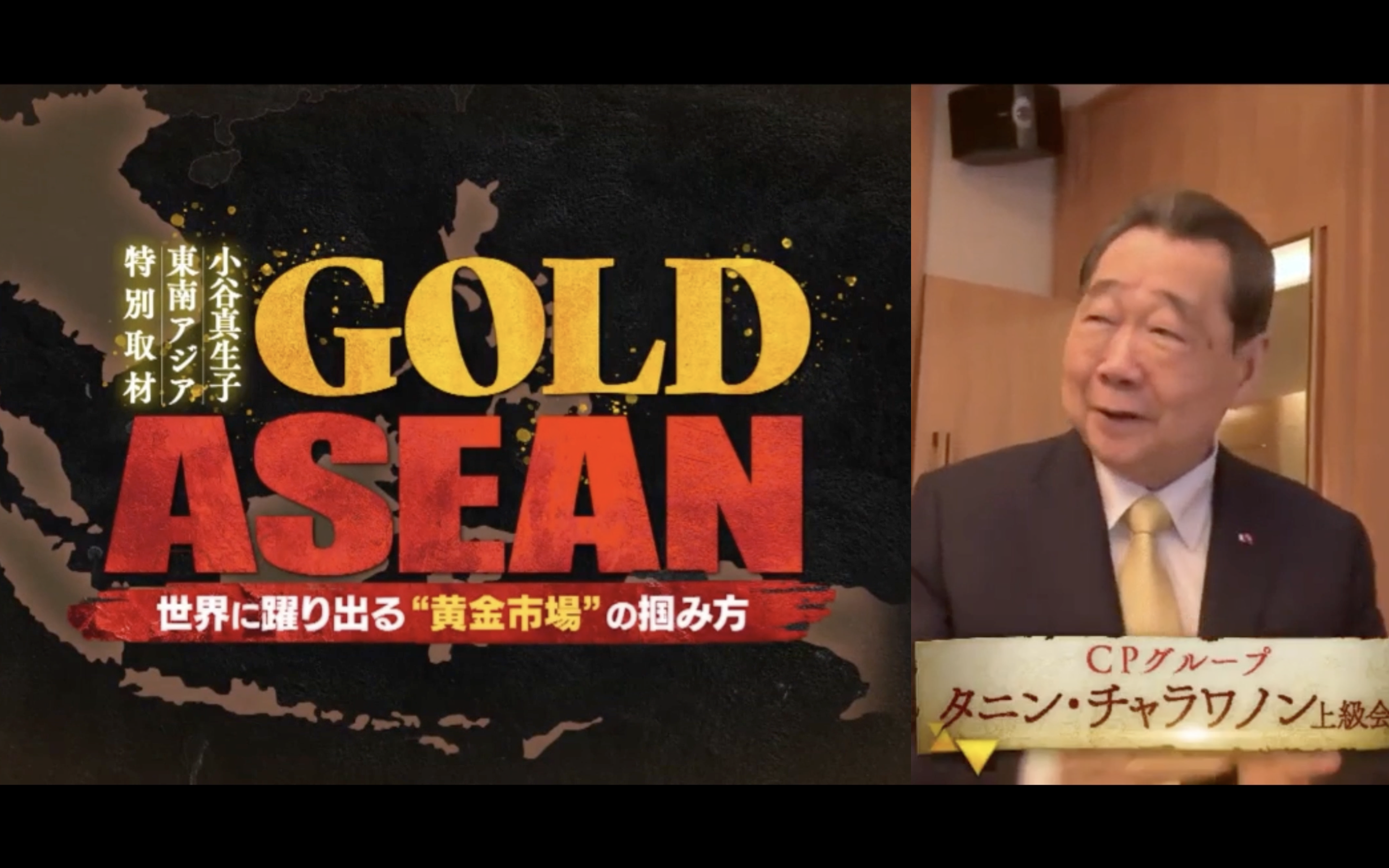 ท่านประธานอาวุโส ธนินท์ เจียรวนนท์ เปิดมุมมองเชิงลึกเกี่ยวกับวิสัยทัศน์การบริหารระดับโลก การขับเคลื่อนองค์กรผ่านเทคโนโลยีและนวัตกรรม รวมถึงแนวทางสร้างความสำเร็จในธุรกิจยุคใหม่ ผ่านรายการ GOLD ASEAN ทาง TV TOKYO โดยมี มาโอโกะ โคทานิ หัวหน้าผู้ประกาศข่าวจาก Nikkei Plus 10 และ TV Tokyo เป็นผู้ดำเนินรายการ และมีคุณโจ ชิบิน (Jo Shibin) COO, Chia Tai Bright Business Japan L.L.C เข้าร่วมรับฟังการสัมภาษณ์ในครั้งนี้ด้วย