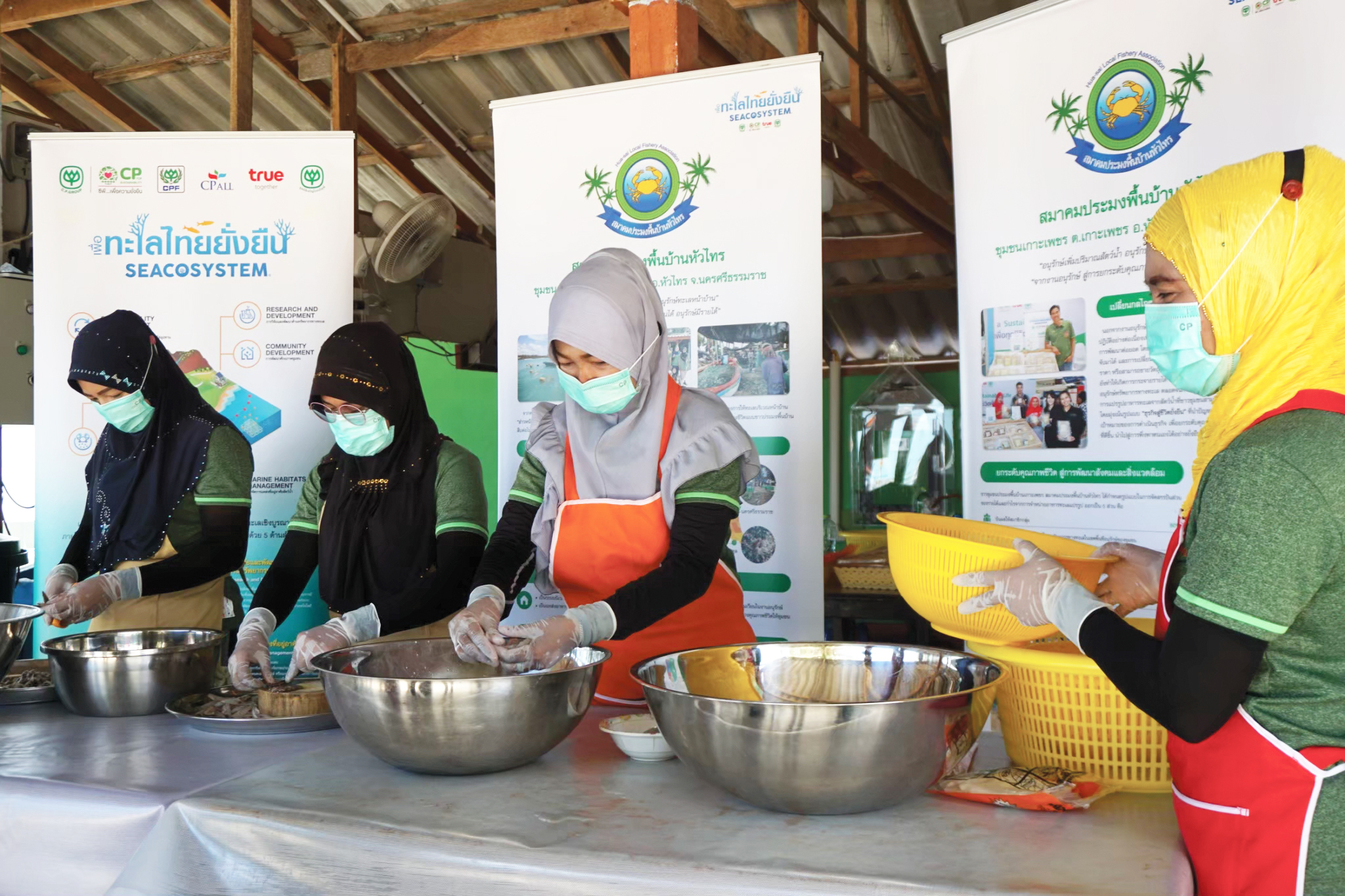 📌📌 ทั้งนี้เครือซีพีฯ ร่วมมือกับองค์กรประมงท้องถิ่น ตำบลหัวไทร จ.นครศรีธรรมราช ร่วมดำเนินการ โครงการธนาคารปู เพื่อชุมชนยั่งยืน องค์กรชุมชนประมงท้องถิ่น ตำบลหัวไทร ได้สนับสนุนให้มีการจัดตั้งกลุ่มฯ และสนับสนุนงบประมาณ อุปกรณ์เพาะเลี้ยง พร้อมส่งเสริมองค์ความรู้ โดยการนำแกนนำและสมาชิกกลุ่มไปศึกษาดูงานการทำธนาคารปู เพื่อการอนุรักษ์และฟื้นฟูทรัพยากรสัตว์น้ำให้กลับคืนมา โดยมุ่งหวังให้ชาวประมงพื้นบ้านมีคุณภาพชีวิตที่ดีขึ้น ทั้งทางด้านเศรษฐกิจ สังคม และสิ่งแวดล้อม และยังช่วยส่งเสริมการรวมกลุ่ม และการมีส่วนร่วมของชุมชน อันจะนำไปสู่การทำกิจกรรมอื่นๆ ร่วมกันต่อไป โดยนวัตกรรมชิ้นนี้เป็นผลลัพธ์ของการแก้ปัญหาแบบบูรณาการ ต้องอาศัยองค์ความรู้ที่หลากหลายในการคิดค้นพัฒนา ทั้งพื้นฐานการเพาะเลี้ยงสัตว์น้ำ การจัดการทรัพยากรทางทะเลด้วยเทคโนโลยีดิจิทัล รวมถึงการพัฒนาเสริมศักยภาพให้แก่ชุมชน เป็นต้น