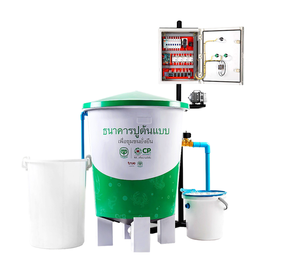 ธนาคารสัตว์น้ำระบบอัตโนมัติ เป็นนวัตกรรมที่เครือเจริญโภคภัณฑ์ส่งเสริมและสนับสนุนให้มีการพัฒนาขึ้นเพื่อพัฒนาสังคมและชุมชน โดยมุ่งแก้ปัญหาการลดลงของทรัพยากรสัตว์น้ำ ซึ่งกระทบต่อรายได้และวิถีชีวิตของชุมชนประมงชายฝั่ง สามารถใช้ขยายพันธุ์สัตว์น้ำที่มีไข่นอกกระดอง อาทิ ปูม้า ปูดำ ปูแสม กั้งกระดาน กุ้งก้ามกราม กุ้งมังกร เป็นต้น โดยเป็นระบบการเพาะฟักรูปแบบใหม่ที่ใช้เทคโนโลยีที่ทันสมัย นำระบบออโตเมชั่นมาใช้ในการควบคุม และมีข้อดีกว่ารูปแบบที่พบได้ทั่วไป เช่น ด้านประสิทธิภาพ ด้านความยืดหยุ่นในการใช้งาน วิธีการใช้งานที่ง่าย และค่าบำรุงรักษาต่ำ