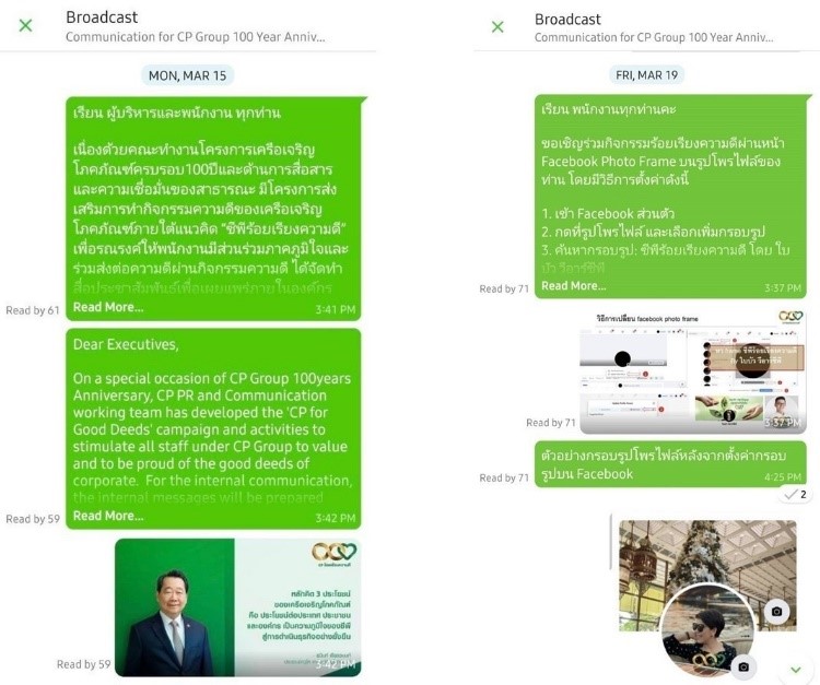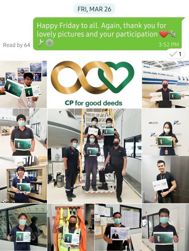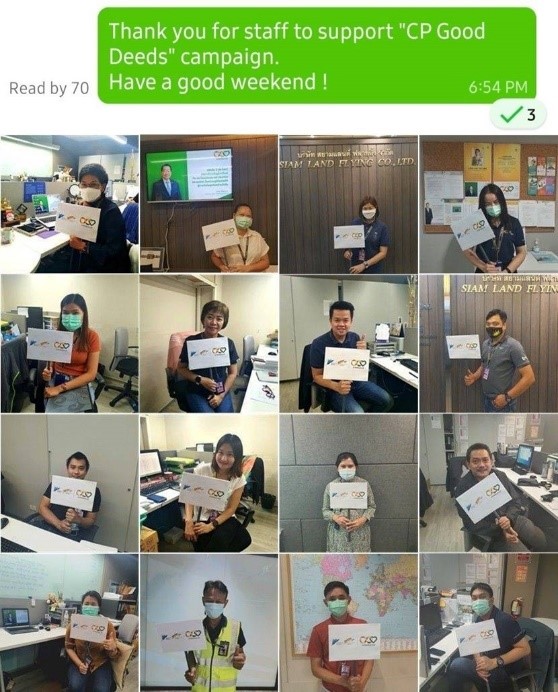 แคมเปญ “ซีพี ร้อยเรียงความดี” คึกคัก หน่วยธุรกิจต่างเดินเครื่องจัดกิจกรรมรณรงค์ในองค์กร ล่าสุด บริษัท สยามแลนด์ ฟลายอิ้ง จำกัด เปิดตัวแคมเปญ “ ซีพีร้อยเรียงความดี” จัดกิจกรรมเชิญชวนพนักงานร่วมกิจกรรม พร้อมเผยแพร่ แนวคิด ผู้บริหารผ่านสื่อและช่องทางภายในของบริษัท เพื่อร่วมถ่ายทอดเรื่องราวดี และกิจกรรมการทำความดี ในโอกาส CP ครบรอบ 100 ปี