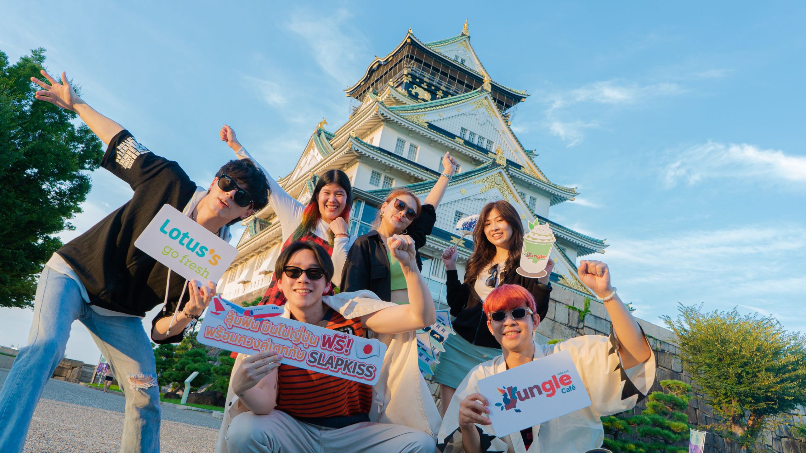 โลตัส ร่วมกับ วง SLAPKISS นำลูกค้าจังเกิ้ลคาเฟ่ (Jungle Café) ผู้มียอดซื้อสูงสุด 3 ท่านแรก ในแคมเปญ “ลุ้นฟิน บินไปญี่ปุ่นฟรี! กับศิลปิน SLAPKISS” เที่ยวญี่ปุ่นแบบสุดฟิน 4 วันเต็ม เกียวโต-อูจิ-โอซาก้า วันที่ 11 – 14 กันยายน 2565 ที่ผ่านมา โดยนอกจากทริปสุดเอ็กซ์คลูซีฟกับศิลปินวง SLAPKISS ที่พาเที่ยวปราสาทโอซาก้า วัดคิโยมิซึ ช้อปปิ้งที่ย่านช้อปปิ้งชื่อดังอย่างชินไซบาชิ แล้ว ยังได้เยี่ยมชมหนึ่งในแหล่งวัตถุดิบผลิตชาเขียวที่ดีที่สุดในญี่ปุ่น ในเมนูน้องใหม่ ชาเขียว ”อูจิมัทชะ” สุดพรีเมียมในราคาที่คุ้มค่าตามแบบฉบับของจังเกิ้ลคาเฟ่ พร้อมร่วมกิจกรรมชงชาเขียวแบบญี่ปุ่น หรือ “ซะโด (Sado)” และชิมชาอร่อย ๆ จากแหล่งกำเนิด สำหรับเมนูชาเขียวอูจิมัทฉะ เป็นเมนูน้องใหม่ของจังเกิ้ลคาเฟ่ ในโลตัส โก เฟรช ชาเขียวมัทฉะเกรดพรีเมียม รสฟาดน้อย ดื่มง่าย คุณภาพเยี่ยม ที่ใช้วัตถุดิบส่งตรงจากเมืองอูจิ แหล่งผลิตชาที่ดีที่สุดในญี่ปุ่น ในราคาที่เอื้อมถึง เริ่มต้นเพียงแก้วละ 40 บาท