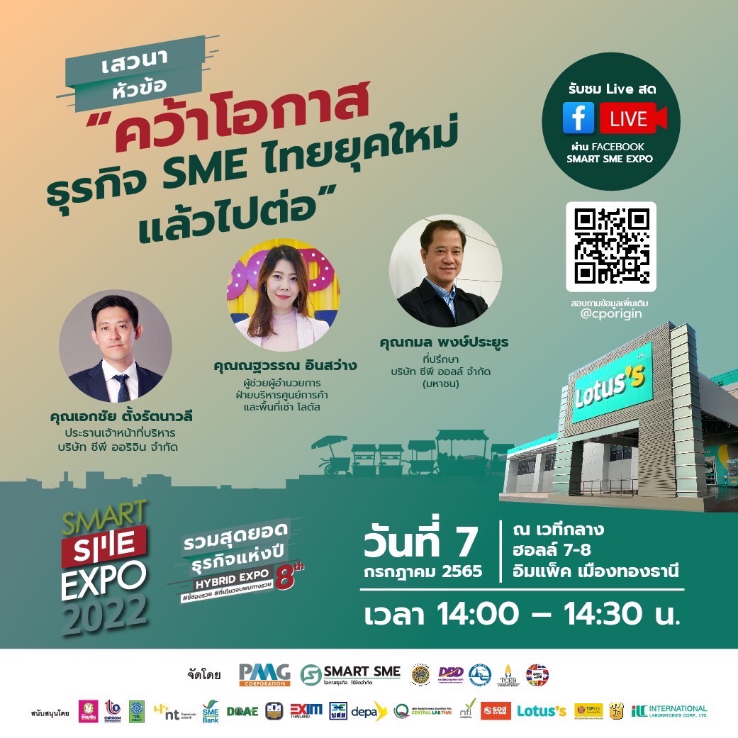 ในงาน SMART SME EXPO 2022 วันที่ 7 กรกฎาคม นี้ เวลา 14.00-14.30 น. ณ อิมแพ๊ค เมืองทองธานี