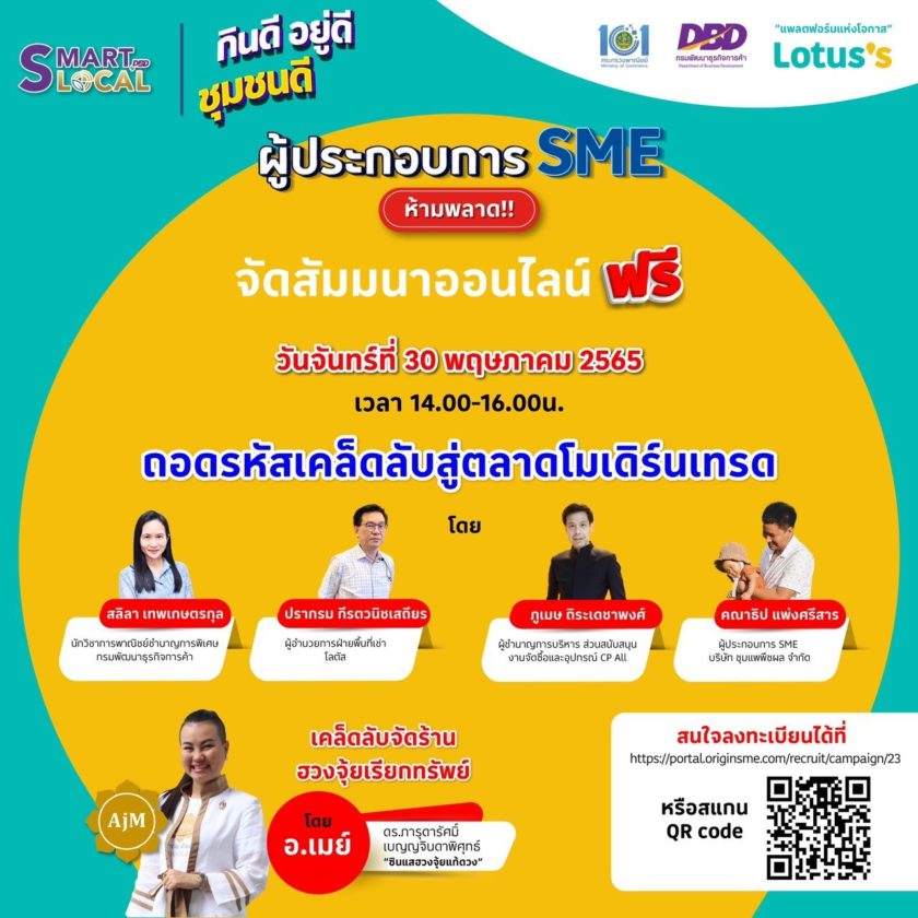 มาร่วมกัน ถอดรหัสเคล็ดลับสู่ตลาดโมเดิร์นเทรด โดย 4 กูรู จากกรมพัฒนาธุรกิจการค้า, โลตัส, ซีพี ออลล์ และผู้ประกอบการ SME ตัวจริง
