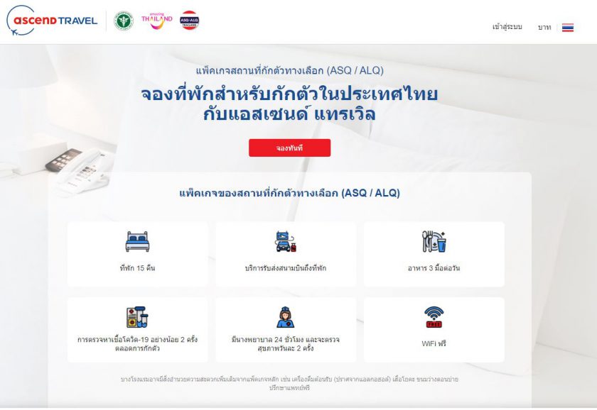 ภาครัฐ ผนึกกำลัง Startup ไทยเปิดตัวแพลตฟอร์มทางเลือกใหม่จองโรงแรมกักตัว ASQ/ALQ รับนักเดินทางตั้งแต่สนามบินจนถึงที่พักลดอัตราความเสี่ยงของการแพร่เชื้อตั้งแต่เริ่มเดินทางจนถึงที่กักตัวตลอด 14 วันในราคาที่ประหยัดเข้าถึงได้ง่าย มีข้อมูลครบถ้วนให้นักท่องเที่ยวสามารถเลือกได้ตามที่ต้องการ สามารถดูข้อมูลและจองที่พักได้แล้วที่ https://asq.ascendtravel.com