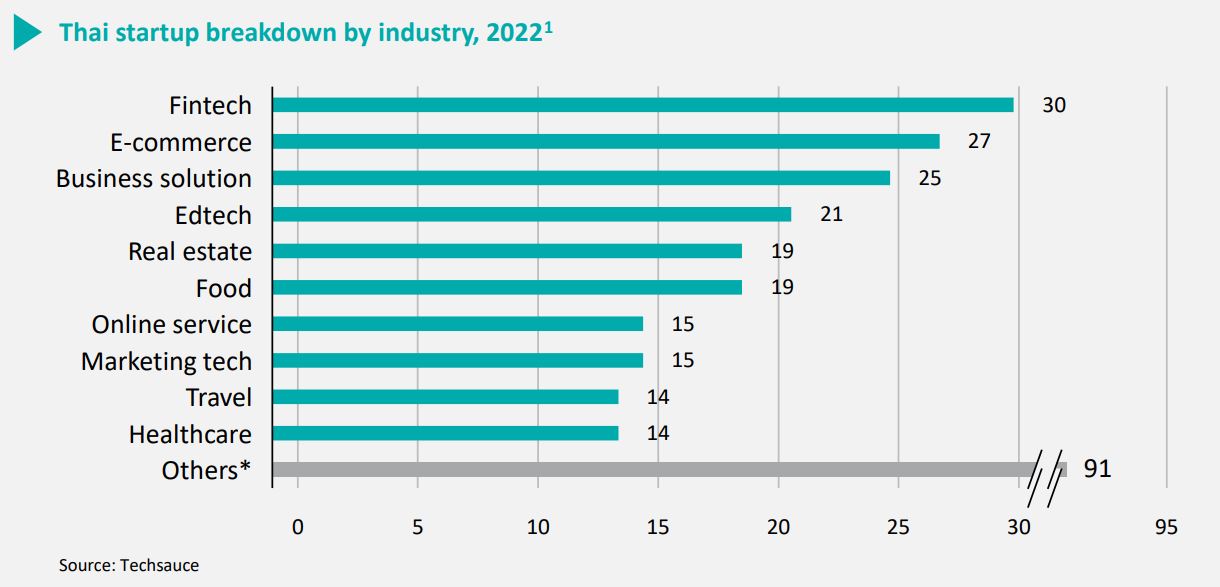 • 1 ใน 3 ของวงการธุรกิจสตาร์ทอัพทั่วโลก คือธุรกิจประเภทที่เกี่ยวข้องกับ Software & Data แต่สตาร์ทอัพอุตสาหกรรมนี้ในไทยที่ใช้ชื่อว่า Business Solution ยังมีค่อนข้างน้อย ซึ่งอยู่ที่ประมาณ 8.6%