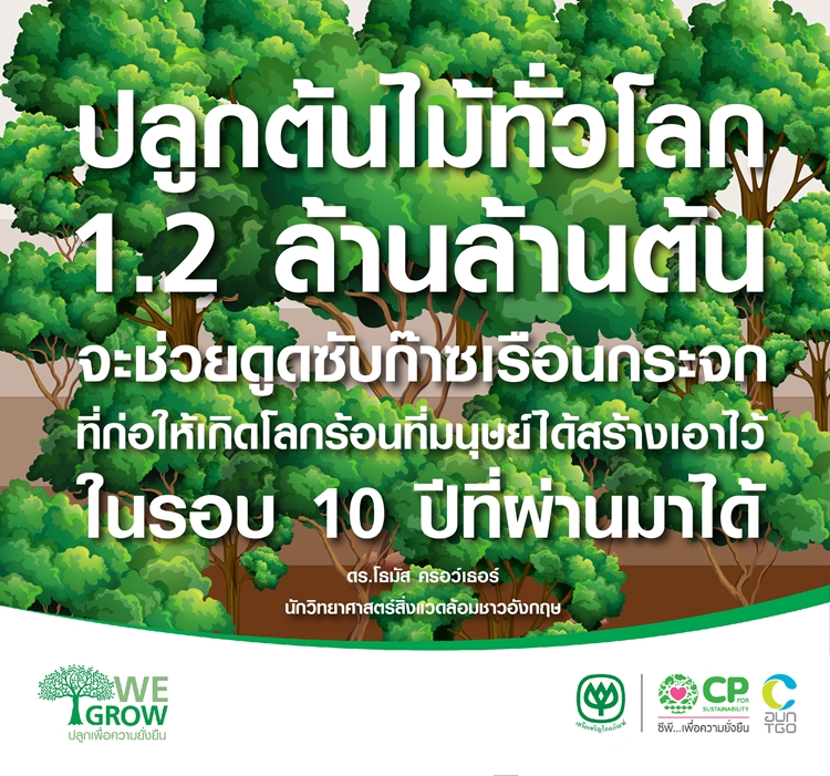 ผลการศึกษานี้เป็นผลงานของที่ปรึกษาโครงการรณรงค์ปลูกต้นไม้ล้านล้านต้นของสหประชาชาติ (UN) ภายใต้ UN’s Trillion Tree Campaign ที่พบว่า การปลูกต้นไม้ 1.2 ล้านล้านต้น หากทั่วโลกทำได้จริง จะเป็นวิธีการที่ลดก๊าซคาร์บอนฯ ที่มีประสิทธิภาพสูงที่สุดมากกว่าวิธีการใดๆ ที่มนุษย์มีอยู่ ไม่ว่าจะเป็นการพึ่งพาพลังงานทางเลือก หรือการลดการบริโภคผลิตภัณฑ์จากสัตว์ก็ตาม