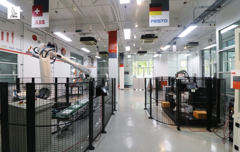 A : เกริ่นก่อนว่าตอนเปิดตัวหลักสูตร เทรนด์หุ่นยนต์กำลังมา แล้วปีต่อมาก็มาเลย แล้วแนวการสอนของเรานั้นมุ่งให้เด็กเป็นในด้าน SI (System Integrator) คือ การออกแบบระบบหุ่นยนต์ โดยต้องสามารถบูรณาการกระบวนการผลิตในระบบอัตโนมัติได้ ไม่ใช่นักพัฒนา (Developer) บริษัทหุ่นยนต์ต่างๆ เห็นว่าเราเปิดสาขานี้จึงนำเอาเทคโนโลยีที่ดีที่สุดของตัวเองมาให้นักศึกษาได้เรียนรู้และให้นำไปใช้กับการฝึกปฏิบัติงาน หลักสูตรของเราจึงทันสมัยอยู่ตลอด เช่น หุ่นยนต์ของบริษัท ABB และการที่เราสร้างศูนย์หุ่นยนต์ iCAS ขึ้น บริษัทต่างๆ ก็ยิ่งต้องการส่งต่อเทคโนโลยีให้เด็กที่มาเรียนได้สร้างความคุ้นเคยกับอุตสาหกรรมนี้