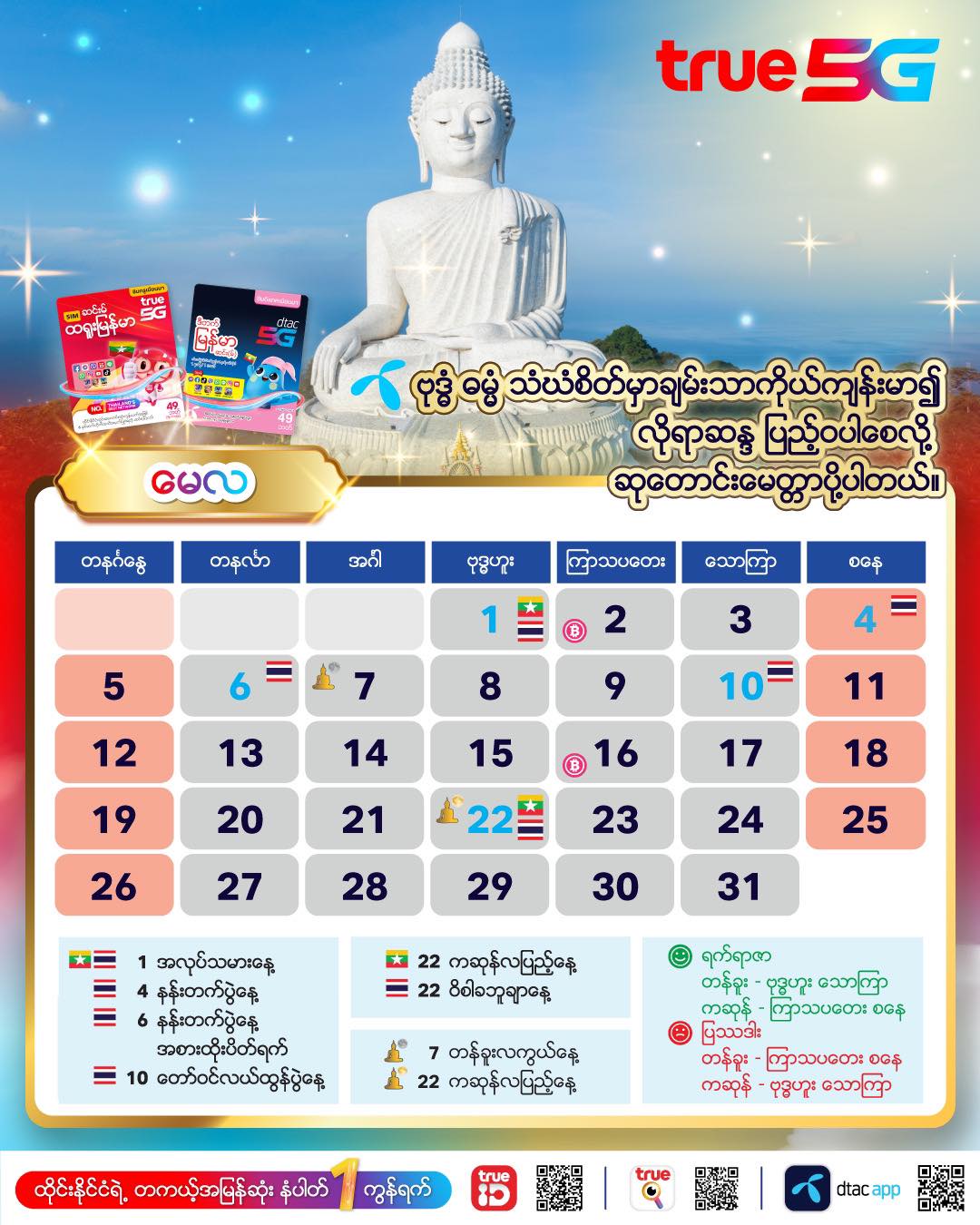 ในเพจเฟซบุ๊ก of dtac Myanmar, True Myanmar, dtac Cambodia, and True Cambodia ที่ถือเป็นคอมมูนิตี้ของพี่น้องแรงงานจะมีปฏิทินบอกวันสำคัญทางศาสนาทั้งในไทย เมียนมา และกัมพูชา ให้กับกลุ่มลูกค้าเป็นประจำทุกเดือน