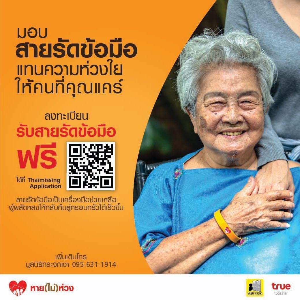 ฝากชาวซีพี บอกต่อผู้ดูแลผู้ป่วยสามารถลงทะเบียนรับสายรัดข้อมือ ”หาย(ไม่)ห่วง” ได้ฟรี! : http://thaimissing.backtohome.org/register สอบถามรายละเอียดได้ที่ มูลนิธิกระจกเงา 095-631-1914