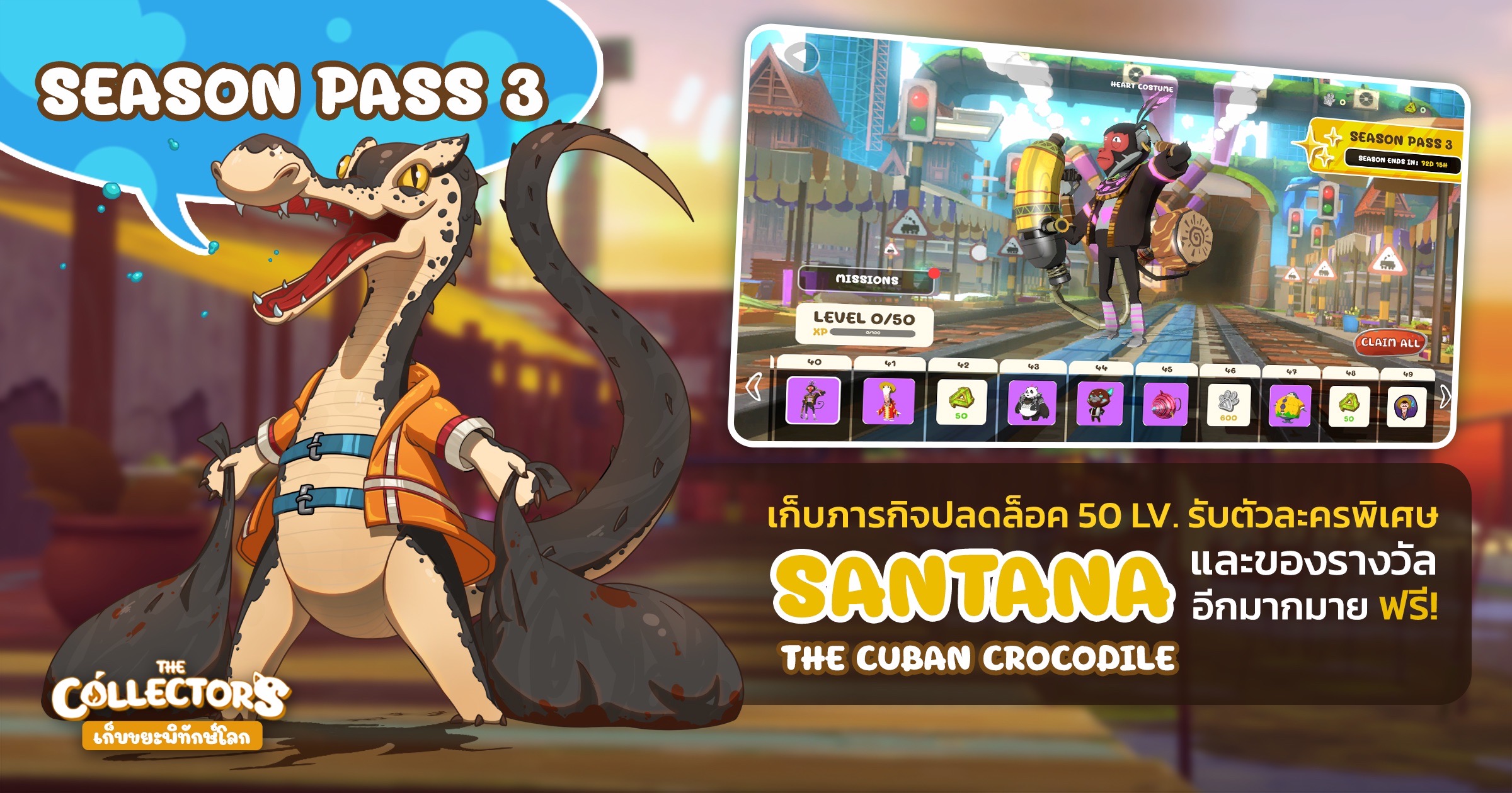 พร้อมสนุกไปกับ The Collectors กับ Season Pass 3 เปิดตัว ฮีโร่พิทักษ์โลกคนใหม่ Santana The Cuban Crocodile ที่จะมาช่วยสบทบกับทีม The Collectors ออกร่วมผจญภัยไปด้วยกัน พร้อมสกินใหม่ในเกมอีกมากมาย