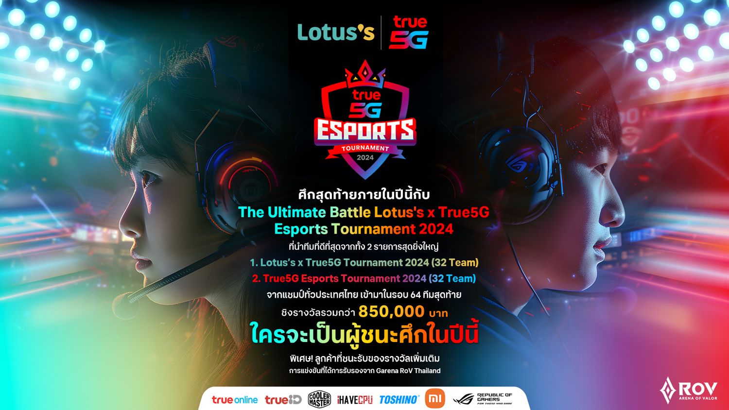 กรุงเทพฯ, 18 พฤศจิกายน 2567 – เตรียมตัวพบกับมหากาพย์แห่งศึกอีสปอร์ตในประเทศไทย ด้วยความร่วมมือครั้งยิ่งใหญ่ระหว่าง ทรู คอร์ปอเรชั่น และ โลตัส จัดการแข่งขัน “The Ultimate Battle Lotus’s x True5G Esports Tournament 2024” รับรองโดย Garena RoV Thailand ซึ่งเป็นการรวมยอดฝีมือ RoV 64 ทีม จากทัวร์นาเมนต์ใหญ่ 2 รายการ ได้แก่ 32 ทีม จาก Lotus’s x True5G Tournament 2024 และ 32 ทีม จาก True5G Esports Tournament 2024 ที่ผ่านมา โดยผู้เข้าแข่งขันจะมาต่อสู้กันในรอบสุดท้าย ณ Lotus’s สาขารังสิต วันที่ 14 ธันวาคม 2567 เพื่อเฟ้นหาสุดยอดนักสู้เกม RoV ระดับมืออาชีพจากทั่วประเทศ ชิงเงินรางวัลรวมกว่า 850,000 บาท พร้อมโอกาสก้าวสู่นักกีฬามืออาชีพต่อไปนอกจากนี้ ภายในงานยังมีกิจกรรมความบันเทิงอีกมากมายอาทิ การแสดงคัฟเวอร์แดนซ์ และการประกวดคอสเพลย์ สร้างบรรยากาศสุดมันให้กับเหล่าเกมเมอร์และผู้เข้าร่วมงาน
