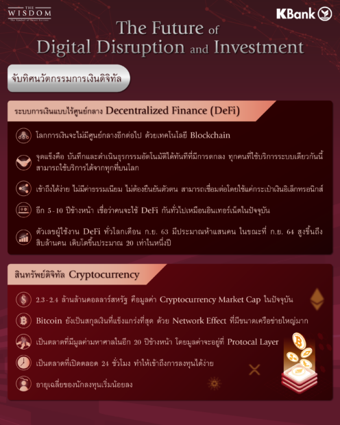 ปัจจุบันการลงทุนเกิดขึ้นในรูปแบบที่แตกต่างจากอดีต โดยเฉพาะคริปโทเคอเรนซีและ DeFi ซึ่งได้สร้างกำไรเป็นกอบเป็นกำจนเกิดเศรษฐีหน้าใหม่จำนวนมาก สิ่งเหล่านี้ช่วยดึงดูดให้นักลงทุนหน้าใหม่และนักลงทุนหน้าเดิมกระโดดเข้าวงการการลงทุนใหม่มากขึ้น