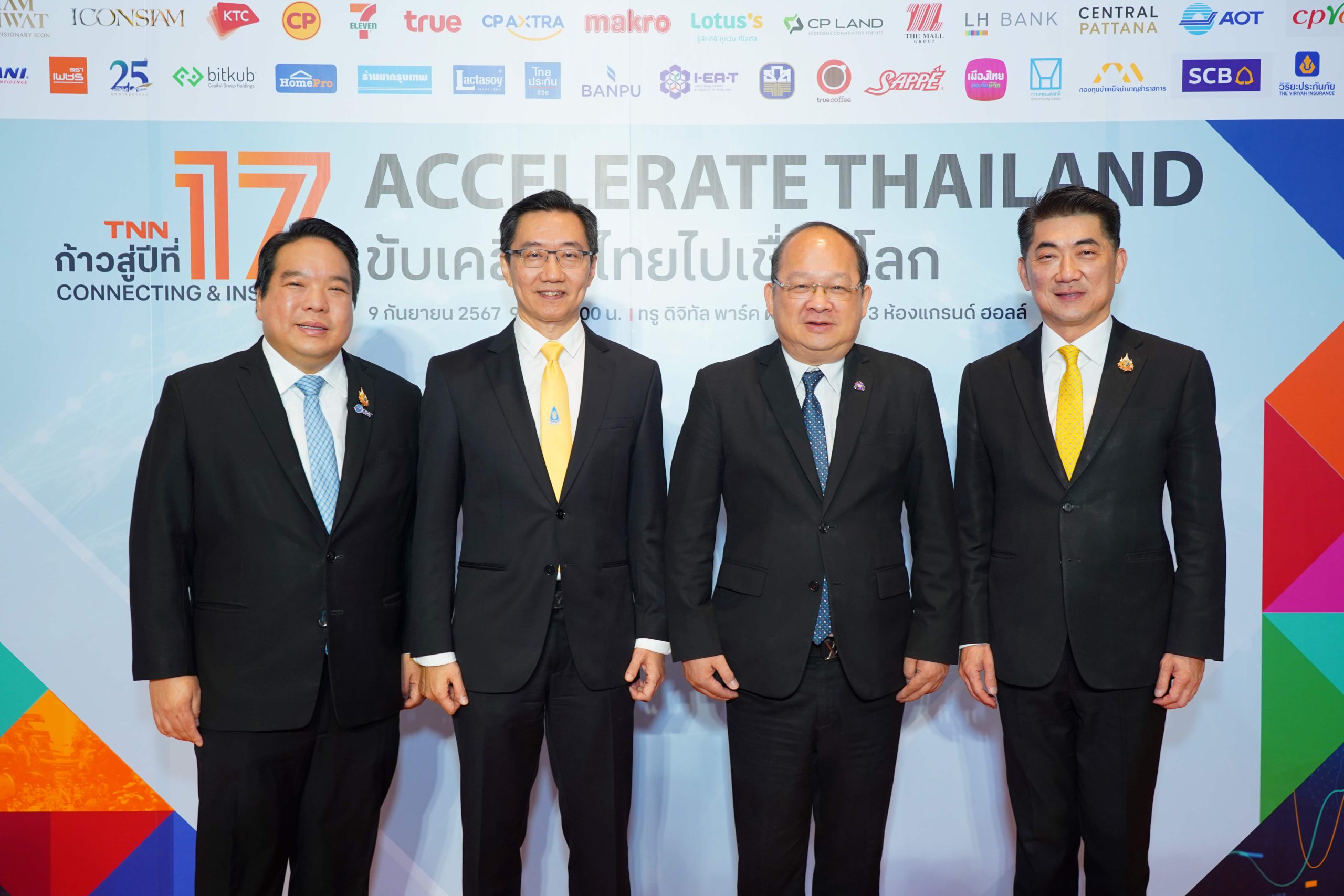 กรุงเทพฯ 12 กันยายน 2567 – ในโอกาสฉลองก้าวสู่ปีที่ 17 สถานีข่าวทีเอ็นเอ็น จัดงานสัมมนา “Accelerate Thailand ขับเคลื่อนไทยไปเชื่อมโลก” เดินหน้าผลักดัน และส่งเสริมความรู้ด้านเศรษฐกิจการเงินการลงทุนอย่างต่อเนื่อง สะท้อนจุดยืนสถานีข่าวคุณภาพอันดับหนึ่งที่ “ทันโลก ทันเศรษฐกิจ ทันทุกความจริง” เชิญผู้นำจากองค์กรระดับประเทศ และหน่วยงานสำคัญของไทย ร่วมนำเสนอวิสัยทัศน์ และยุทธศาสตร์ เพื่อยกระดับขีดความสามารถในการแข่งขันของประเทศไทยในเวทีโลก โดยได้รับเกียรติจาก นายองอาจ ประภากมล หัวหน้าสายงานทรูวิชั่นส์ และมีเดีย บมจ.ทรู คอร์ปอเรชั่น และกรรมการผู้จัดการ บริษัท ไทย นิวส์ เน็ตเวิร์ค (ทีเอ็นเอ็น ช่อง 16) จำกัด เป็นประธานกล่าวเปิดงาน