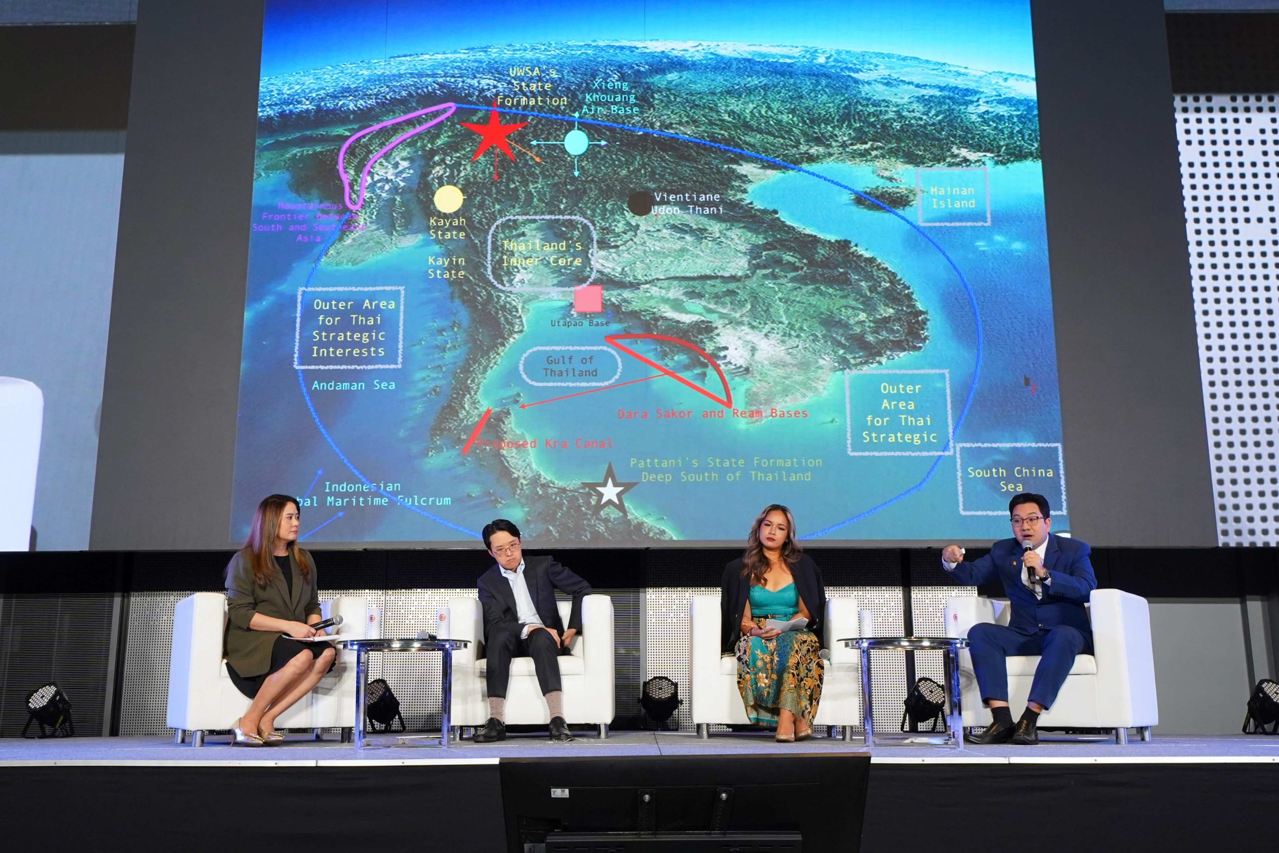สำหรับเวทีสัมมนาภาคบ่าย เป็นการพูดคุยกันต่อกับในหัวข้อ “ปลดล็อกกับดัก : การปรับจุดยืนไทยในโลกที่แบ่งขั้ว” จาก ดร.อาร์ม ตั้งนิรันดร ผู้อำนวยการศูนย์จีนศึกษา สถาบันเอเชียศึกษา ที่ได้วิเคราะห์สถานการณ์โลกที่กำลังเข้าสู่ยุค “การทวนกระแสโลกาภิวัตน์ (Deglobalization)” อันเป็นผลกระทบจากสงครามการค้าระหว่างสหรัฐฯ และจีน วิกฤตโควิด-19 และสงครามรัสเซีย-ยูเครน” โดยที่ ผศ.ดร.สุรัชนี ศรีใย นักวิจัยอาคันตุกะ สถาบันเอเชียอาคเนย์ศึกษายูซุฟ อิสฮัค กล่าวเสริมว่า “สถานการณ์โลกที่ผันผวนนี้ส่งผลกระทบต่อไทยอย่างหลีกเลี่ยงไม่ได้ โดยเฉพาะอย่างยิ่ง การเลือกตั้งประธานาธิบดีสหรัฐฯ ที่กำลังจะเกิดขึ้นในปลายปีนี้ อาจเป็นตัวแปรสำคัญที่กำหนดทิศทางความสัมพันธ์ระหว่างประเทศ และนโยบายต่างประเทศของสหรัฐฯ ที่มีต่อไทย และภูมิภาค” ทางด้าน รศ.ดร.ดุลยภาค ปรีชารัชช รองศาสตราจารย์สาขาวิชาเอเชียศึกษา ม.ธรรมศาสตร์ และนายกสมาคมภูมิภาคศึกษา เสนอแนวทาง “3 ทางเลือกนโยบายต่างประเทศสำหรับไทย คือ การเป็นกลางแบบยืดหยุ่น การเสริมสร้างแกนนอก และการประกาศเป็นศูนย์กลางอาเซียน โดยเน้นย้ำถึงความสำคัญของการกำหนดผลประโยชน์ของชาติให้ชัดเจน และการแสวงหาความร่วมมือกับประเทศต่างๆ ทั้งใน และนอกภูมิภาค”