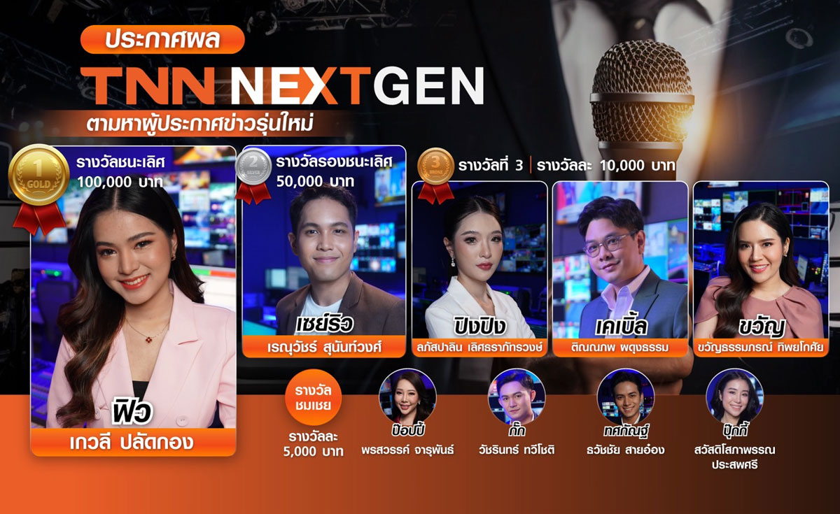 สถานีโทรทัศน์ TNN ช่อง 16 ร่วมกับเครือเจริญโภคภัณฑ์ หรือซีพี จัดโครงการ TNN NEXT GEN 2024 เวทีค้นหาสุดยอดผู้ประกาศข่าวรุ่นใหม่ไฟแรง เปิดรับสมัครผู้ประกาศข่าว พร้อมโอกาสร่วมงานกับคนข่าวตัวจริง มีผู้สนใจส่งผลงานเข้าร่วมจากทั่วประเทศอย่างล้นหลาม คณะกรรมการได้พิจารณาผู้ผ่านการคัดเลือกรอบแรก 32 คน เพื่อเข้าร่วม Audition ที่ Studio สถานีโทรทัศน์ TNN ช่อง 16 อาคารทรู ดิจิทัล พาร์ค 101 อย่างข้มเข้น