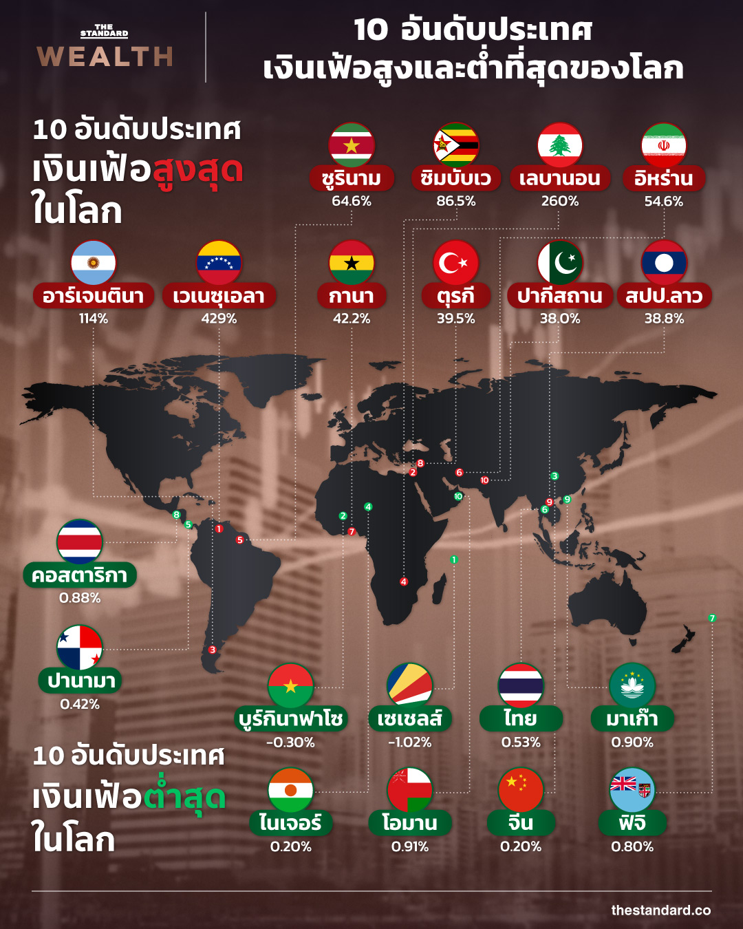 10 อันดับประเทศเงินเฟ้อสูงและต่ำที่สุดของโลก