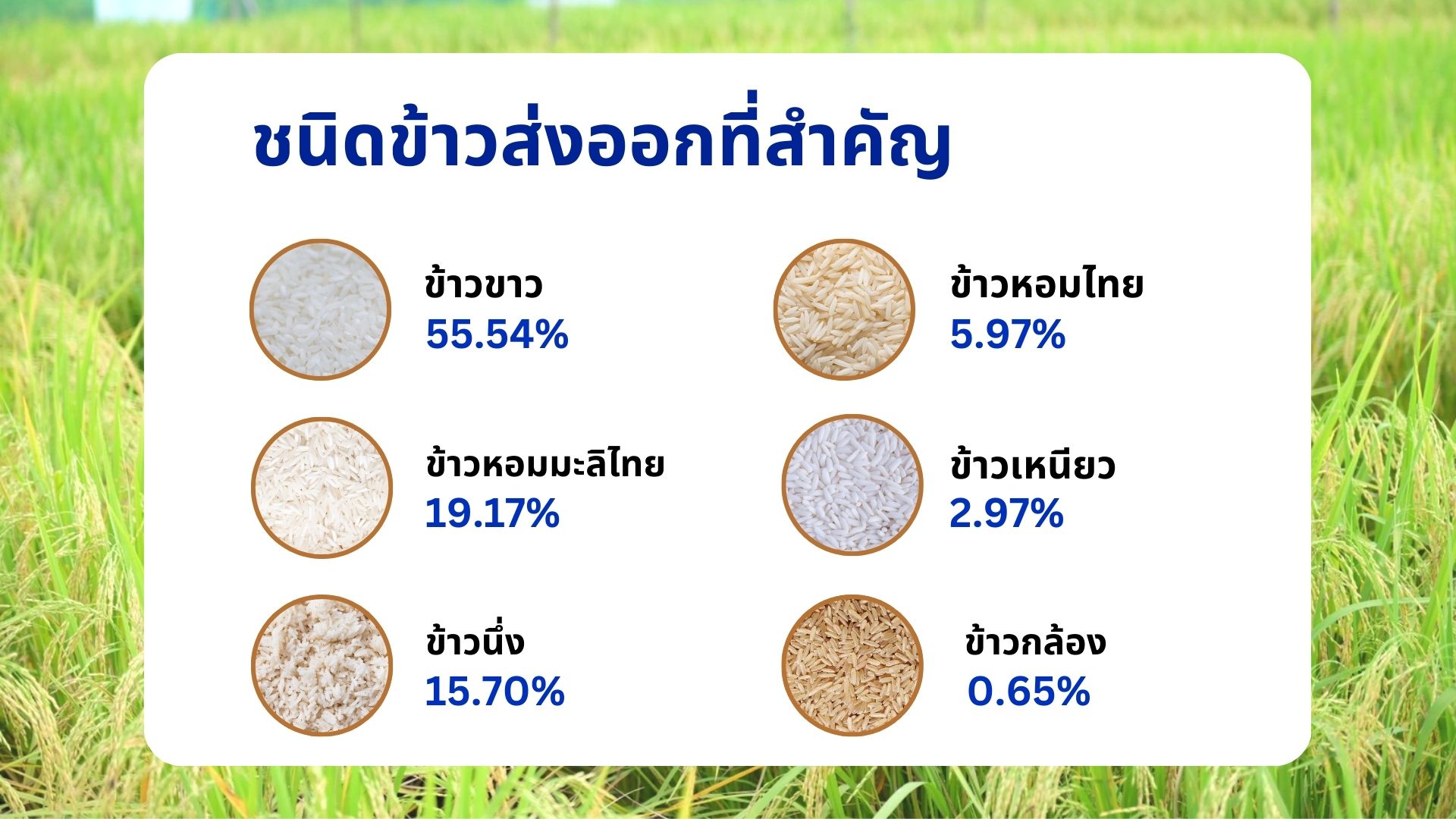 โดยปัจจัยที่คาดว่าจะผลต่อการส่งออกข้าวไทยในปีนี้ คือผลผลิตข้าวของไทยที่คาดว่าจะลดลงจากปีก่อน 5.87% ซึ่งเป็นผลกระทบจากปรากฏการณ์เอลนีโญ และการส่งออกที่อาจเผชิญกับการแข่งขัน และความท้าทายหลายประการ เช่น ปริมาณผลผลิตข้าวโลกที่มีแนวโน้มเพิ่มขึ้นมากกว่าปีที่ผ่านมา