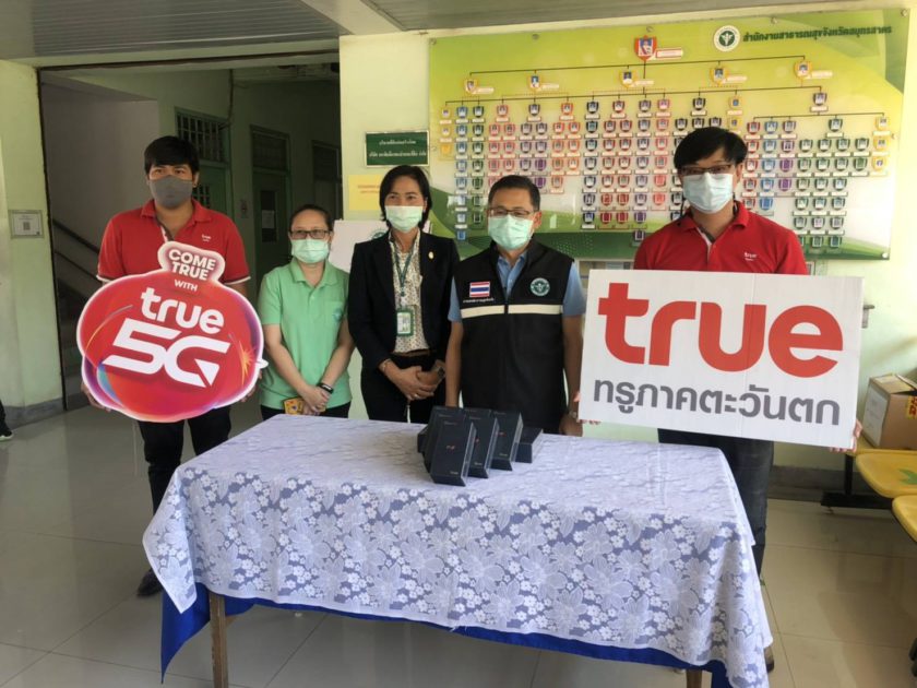 สำนักงานสาธารณสุขจังหวัดสมุทรสาคร โดย นายแพทย์นเรศฤทธิ์ ขัดธะสีมา นายแพทย์สาธารณสุขจังหวัด รับมอบสมาร์ทโฟน จำนวน 10 เครื่อง พร้อมแพ็กเกจโทรฟรีไม่จำกัดทุกเครือข่าย และ อินเทอร์เน็ตความเร็ว 4 Mbps ไม่อั้น ไม่ลดสปีด จากกลุ่มทรู โดย คุณพุทธรักษา เพ็ญสาดแสง ผู้จัดการฝ่ายขาย ภาคตะวันตก สำหรับใช้ติดต่อสื่อสารในภารกิจสู้ภัยโควิด-19 ที่กำลังแพร่ระบาดหนักในมหาชัย ซึ่งการสนับสนุนครั้งนี้สะท้อนความมุ่งมั่นของกลุ่มทรู ในการพัฒนานวัตกรรมเทคโนโลยีดิจิทัล เพื่อให้คนไทยได้ใช้งานทั้ง 3G, 4G และ 5G บนเครือข่ายอัจฉริยะที่ดีกว่าและเร็วแรงกว่า ครอบคลุม 77 จังหวัดทั่วไทย รวมถึงยังตอกย้ำความตั้งใจของกลุ่มทรู ที่จะเดินหน้าเคียงคู่คนไทยให้ชนะโควิด-19 ไปด้วยกัน