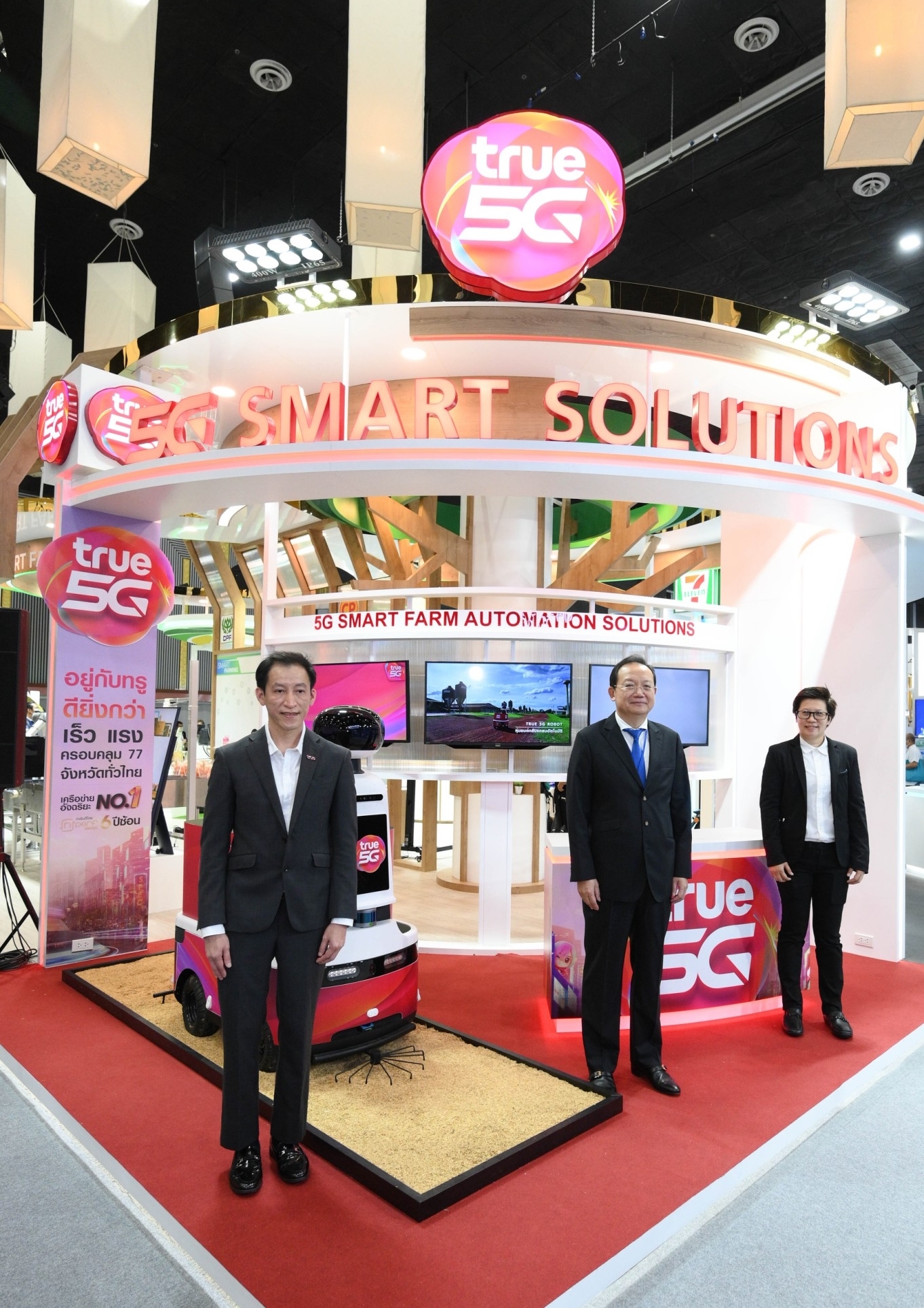 เชียงใหม่ 30 มิถุนายน 2565 – พล.อ.ประยุทธ์ จันทร์โอชา นายกรัฐมนตรี เป็นประธานเปิดงาน FTI EXPO 2022 : มหกรรมแสดงสินค้าและนวัตกรรมอุตสาหกรรมไทย ที่สภาอุตสาหกรรมแห่งประเทศไทยจัดขึ้นระหว่างวันที่ 29 มิ.ย. – 3 ก.ค. 2565 ณ ศูนย์ประชุมและแสดงสินค้านานาชาติฯ จังหวัดเชียงใหม่ พร้อมเยี่ยมชมนิทรรศการของเครือเจริญโภคภัณฑ์ โดย นายวิเชาวน์ รักพงษ์ไพโรจน์ ประธานคณะผู้บริหาร ด้านกิจการองค์กร และกลุ่มทรู โดย คุณธวัชชัย ฤกษ์สำราญ รองผู้อำนวยการธุรกิจโมบายล์ และคณะกรรมการยุทธศาสตร์ 5G ที่ร่วมแสดงศักยภาพและความก้าวหน้าของเครือฯ ซึ่งขับเคลื่อนยุทธศาสตร์ภายใต้นโยบาย BIO-CIRCULAR-GREEN ECONOMY (BCG Economy) ด้วยแนวคิด “MAKING TODAY A BETTER TOMORROW” โดยกลุ่มทรู ในฐานะผู้นำดิจิทัลเทคโนโลยี ได้นำศักยภาพระบบนิเวศทรู 5G นวัตกรรมและโซลูชัน รวมทั้ง Use Case ที่หลากหลาย ครอบคลุมทุกมิติของทุกอุตสาหกรรม มาร่วมพัฒนาทั้งด้านการเกษตร อันได้แก่ นวัตกรรม True 5G Digital Solution for Bio-Circular ที่ประกอบด้วย Smart Farm Automation Solution ศูนย์กลางการเชื่อมต่อข้อมูลจากทุกระบบของฟาร์มผ่านอุปกรณ์ IoT sensor อาทิ Wind speed sensor – เซนเซอร์วัดความเร็วลมในเล้าแบบเรียลไทม์ Temperature, humidity and luminosity sensor – loT เซนเซอร์วัดสภาพแวดล้อม ภายในโรงเรือนพื้นฐาน Silo sensor – เซนเซอร์วัดปริมานอาหารคงเหลือภายในถังไซโลอาหารไก่ นอกจากนี้ยังได้พัฒนา 5G Autonomous Poultry Robot หุ่นยนต์กลับแกลบอัตโนมัติ ซึ่งดิจิทัลโซลูชันดังกล่าวสามารถควบคุมสภาพแวดล้อมในโรงเรือนปศุสัตว์ให้เหมาะสม ปลอดเชื้อ พร้อมช่วยเกษตรกรรุ่นใหม่ลดความเสี่ยงการติดเชื้อโรค ตลอดจนเสริมประสิทธิภาพผลผลิตดั้งแต่ต้นน้ำยันปลายน้ำ