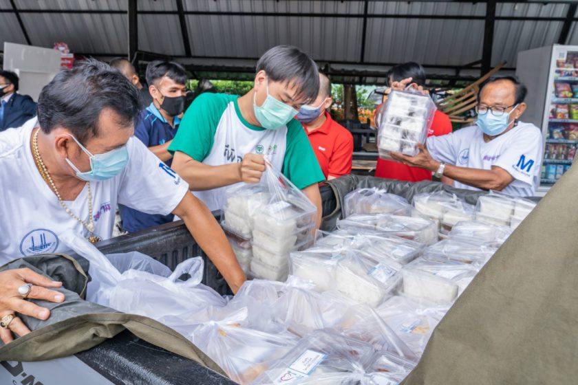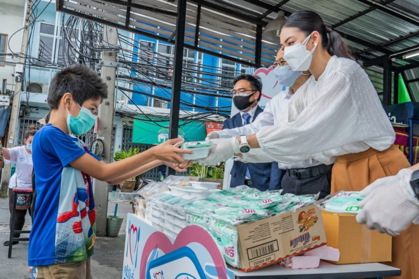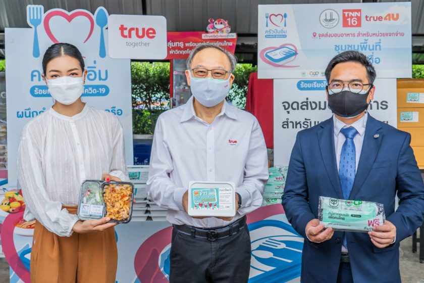 กว่า 15 วัน ที่พี่น้องชาวพื้นที่เขตบางซื่อได้อิ่มท้องด้วยอาหารปรุงสุกสดใหม่จากโครงการ “ครัวปันอิ่ม ซีพีร้อยเรียงใจ สู้ภัยโควิด-19” ซึ่งยังเดินหน้าต่อเนื่อง โดย มูลนิธิเตาปูน นำโดย นายชื่นชอบ คงอุดม (ขวา) ผู้ช่วยรัฐมนตรีประจำกระทรวงการคลัง และที่ปรึกษามูลนิธิ และ กลุ่มทรู โดย นายอาณัติ เมฆไพบูลย์วัฒนา (กลาง) รองประธานคณะกรรมการบริหาร บมจ. ทรู คอร์ปอเรชั่น ร่วมด้วย ทีเอ็นเอ็น และ ทรูโฟร์ยู ชวนดาราสาวจิตอาสา แพนเค้ก-เขมนิจ จามิกรณ์ ร่วมส่งมอบอาหารและหน้ากากอนามัยซีพี เพื่อบรรเทาความเดือดร้อนแก่พี่น้องคนไทยในภาวะวิกฤตโควิด-19 ณ จุดส่งมอบอาหารชุมชนพื้นที่เขตบางซื่อ ซึ่งเป็นหนึ่งในจุดส่งมอบอาหารภายใต้การดูแลของกลุ่มทรู โดยปัจจุบัน จุดส่งมอบอาหารชุมชนพื้นที่เขตบางซื่อ ได้ส่งมอบอาหารจากซีพีเอฟและร้านอาหารในชุมชนใกล้เคียง ให้แก่พี่น้องในชุมชนต่างๆ ในเขตบางซื่อแล้วกว่า 80 ชุมชน และจะยังคงเดินหน้าส่งมอบอาหาร วันละ 1,000 กล่อง และหน้ากากอนามัยซีพี สัปดาห์ละ 9,000 ชิ้น พร้อมส่งกำลังใจให้คนไทยก้าวผ่านช่วงเวลาที่ยากลำบากและกลับมามีรอยยิ้มด้วยกันอีกครั้ง