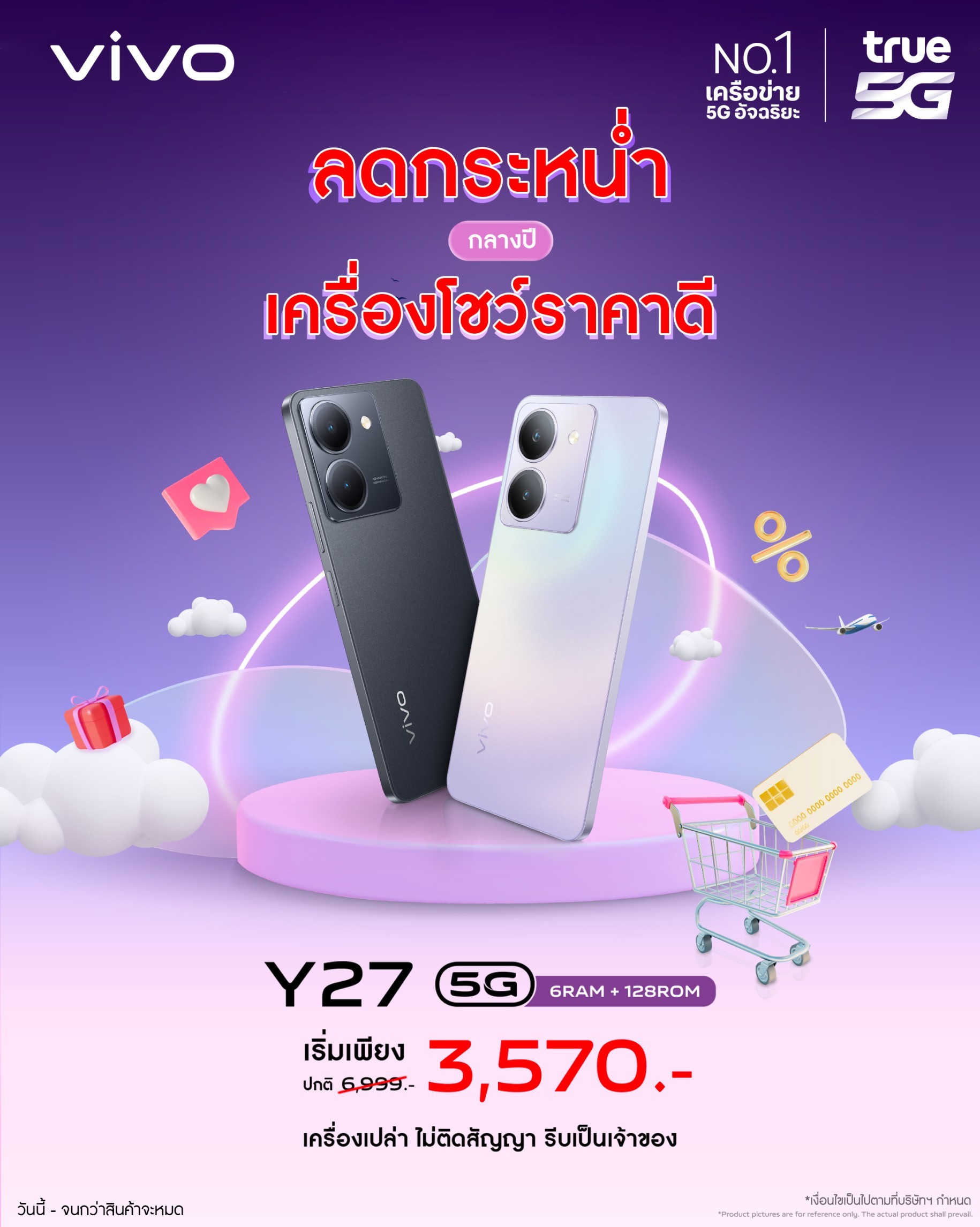 - VIVO Y27 (6+128GB) ราคาพิเศษ 3,570 บาท (ปกติ 6,999)