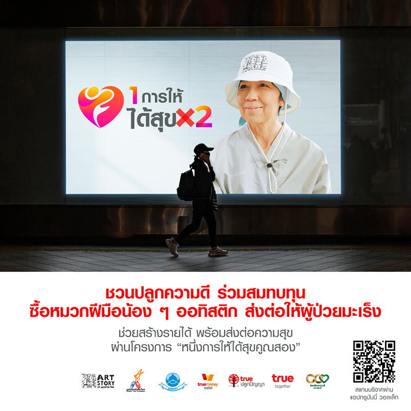 กลุ่มทรู ร่วมกับมูลนิธิออทิสติกไทย และมูลนิธิถันยรักษ์ ในพระราชูปถัมภ์สมเด็จพระศรีนครินทราบรมราชชนนี ชวนคุณปลูกความดี ร่วมสมทบทุนซื้อหมวกฝีมือน้อง ๆ ออทิสติก ส่งต่อให้ผู้ป่วยมะเร็ง ช่วยสร้างรายได้ พร้อมส่งต่อความสุขผ่านโครงการ “หนึ่งการให้ได้สุขคูณสอง”