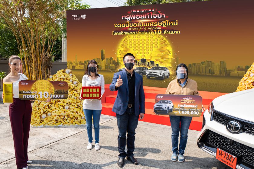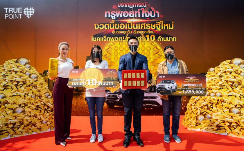 กลุ่มทรู โดย คุณฐานพล มานะวุฒิเวช หัวหน้าคณะผู้บริหาร ด้านการบริหารความสัมพันธ์ลูกค้า บริษัท ทรู ดิจิทัล กรุ๊ป จำกัด ส่งมอบโชครางวัลแจ็กพอตใหญ่ให้กับลูกค้าทรูผู้โชคดี กับ “ปรากฏการณ์ทรูพอยท์ใจป้ำ งวดนี้ขอเป็นเศรษฐีใหม่” ที่ลูกค้าลุ้นฟรีได้ทุกเดือน และใช้คะแนนทรูพอยท์เริ่มเพียง 3 คะแนน ลุ้นได้ทุกวัน เพื่อลุ้นรางวัลใหญ่กับโชคแจ็กพอตทองคำมูลค่า 10 ล้านบาท, ลุ้นรถในฝันทุกเดือน และลุ้นสร้อยคอทองคำทุกวัน มูลค่ารางวัลรวมกว่า 16 ล้านบาท ทางแอปทรูไอดี โดยลูกค้าทรูผู้โชคดีได้รับรางวัลทองคำ มูลค่า 10 ล้านบาท ได้แก่ คุณเกษรา เจ็งสวัสดิ์ และรางวัลรถยนต์ TOYOTA รุ่น Fortuner 2.8 Legender 4WD มูลค่า 1,859,000 บาท ได้แก่ คุณกุลนันท์ ทิภาลัย โดยมีมาตรการป้องกันการแพร่ระบาดของโควิด-19 แก่ผู้เกี่ยวข้องอย่างเคร่งครัด เมื่อเร็วๆนี้