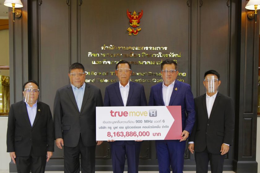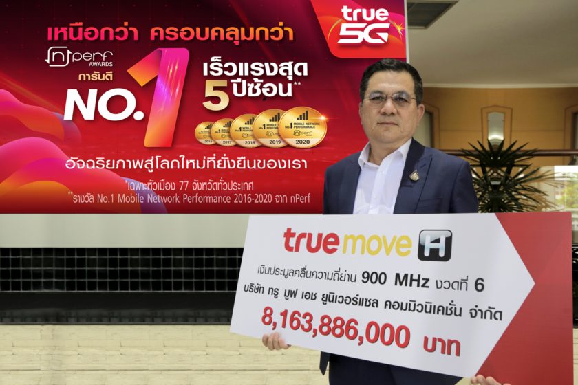 สำนักงานคณะกรรมการกิจการกระจายเสียง กิจการโทรทัศน์ และกิจการโทรคมนาคมแห่งชาติ โดย พล.อ.สุกิจ ขมะสุนทร (ที่ จาก ) ประธานคณะกรรมการ พร้อมด้วย คณะผู้บริหาร กสทช. ร่วมรับมอบเงินค่าประมูลคลื่นความถี่สำหรับกิจการโทรคมนาคมย่าน 900 MHz คลื่นความถี่ 905 – 915 MHz / 950 – 960 MHz งาดที่ 6 จาก บริษัท ทรูมูฟ เอช ยูนิเวอร์แซล คอมมิวนิเคชั่น จำกัด โดย คุณจักรกฤษณ์ อุไรรัตน์ (ที่ จาก ) หัวหน้าคณะผู้บริหารด้านรัฐกิจสัมพันธ์ บมจ. ทรู คอร์ปอเรชั่น จำนวน 8,163.886 ล้านบาท (รวมภาษีมูลค่าเพิ่มแล้ว) ตามเงื่อนไขของการชำระเงินประมูล โดย ทรูมูฟ เอช ยังคงมุ่งมั่นดูแลและพัฒนาคุณภาพเครือข่ายอย่างต่อเนื่อง ทั้ง 3G, 4G และ 5G ตอกย้ำผู้นำเครือข่ายที่ครบกว่า ด้วยคลื่นความถี่ทั้ง 7 ย่านที่ผสานการทำงานด้วยกันอย่างไร้รอยต่อ จึงเร็วแรงกว่า และครอบคลุมกว่า ทุกการใช้งาน การันตีด้วยผลการทดสอบสำรวจความเร็วโมบายล์อินเทอร์เน็ตประจำปี 2563 โดยสถาบันทดสอบคุณภาพระดับโลกอย่าง nPerf ที่ประกาศให้ ทรูมูฟ เอช เป็น “เครือข่ายยอดเยี่ยม/ที่ดีที่สุดในประเทศไทย ปี 2563” ครองแชมป์ต่อเนื่อง 5 ปีซ้อน ตั้งแต่ปี 2559-2563