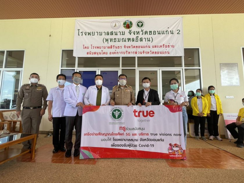 • โรงพยาบาลสนาม จังหวัดขอนแก่น โดย นายสมศักดิ์จังตระกุล ผู้ว่าราชการจังหวัดขอนแก่น. รับมอบจากนายอิศรา เพชรเลิศอนันต์ ผู้จัดการทั่วไป ประจำจังหวัดขอนแก่นและ บมจ. ทรู คอร์ปอเรชั่น